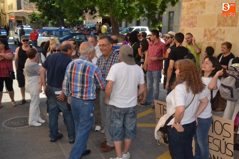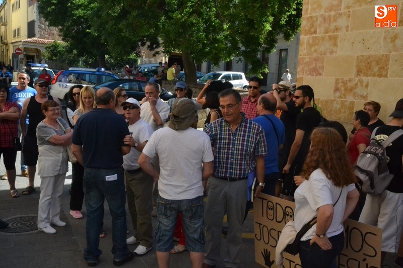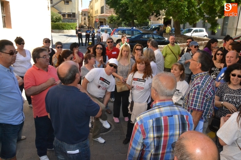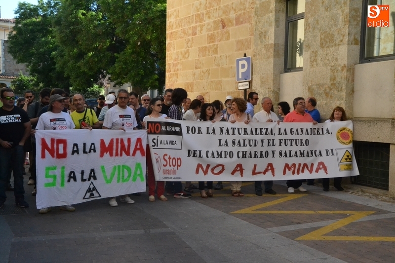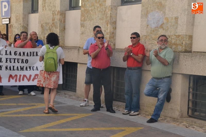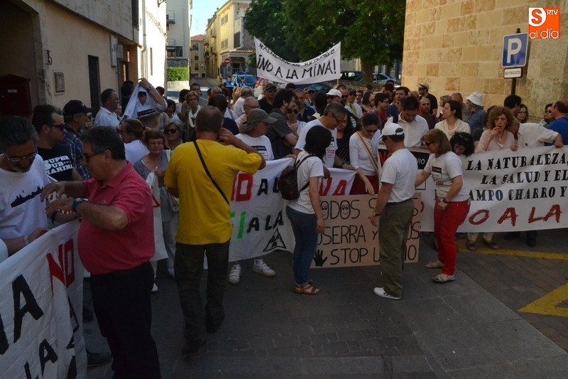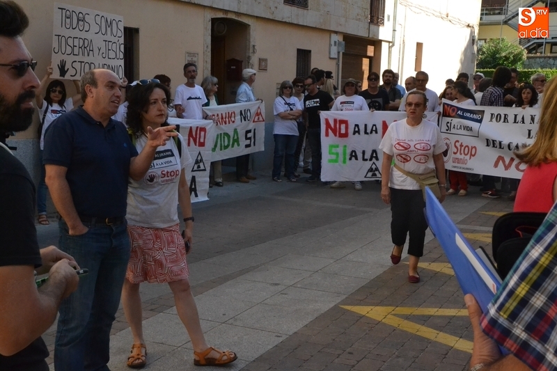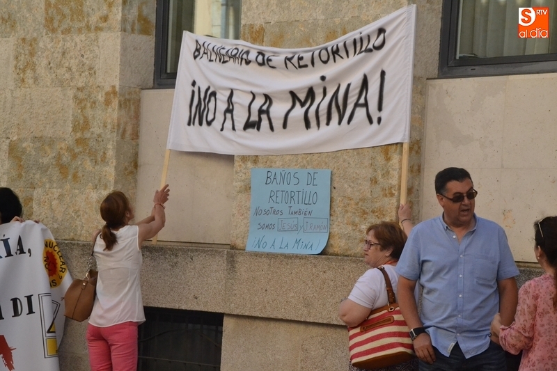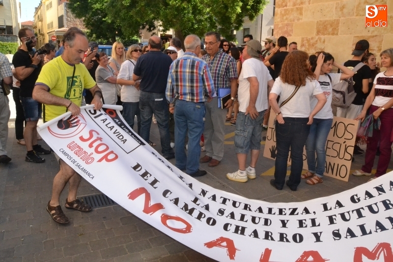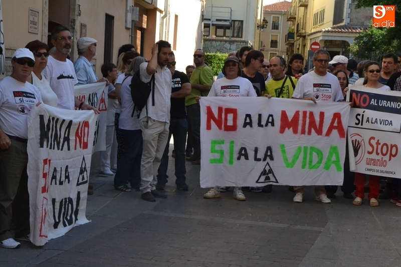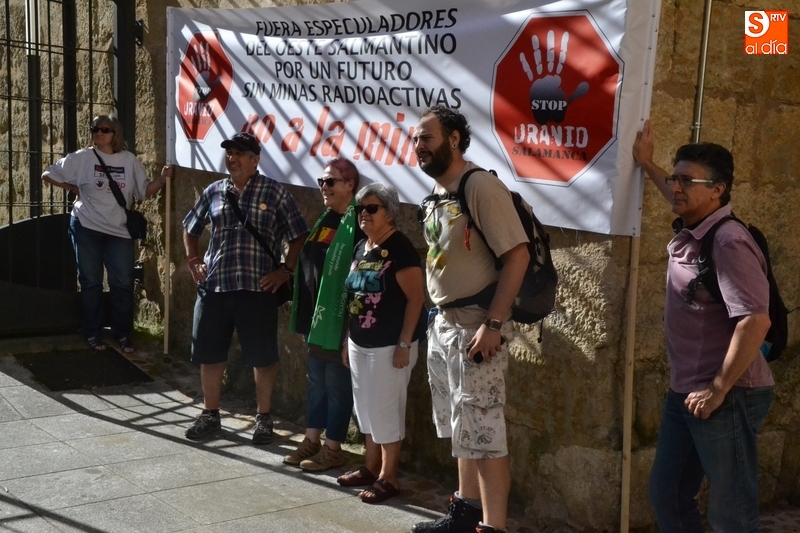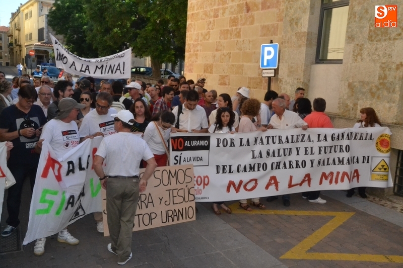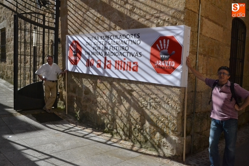 Jesús Cruz y José Ramón Berrueco estuvieron acompañados en su paso por los Juzgados de Ciudad Rodrigo de algo más de 150 personas, llegadas de toda la provincia e incluso de fuera de ella, entre los que hubo representantes de IU, Equo y Podemos, integrantes de Stop Uranio o personas relacionadas con el Balneario de Retortillo, que portaron pancartas rechazando los proyectos mineros de Berkeley.