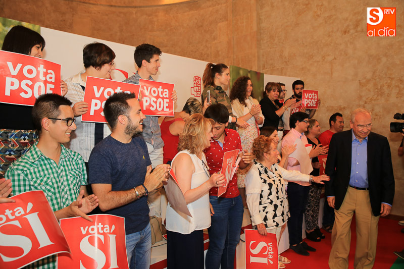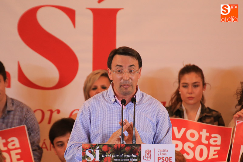 El veterano socialista Alfonso Guerra, durante su mitin en el abarrotado auditorio San Blas, ha estado respaldado por los socialistas salmantinos, así como por algunos miembros del PSOE de la Comunidad de Castilla y León. El que fuera vicepresidente del Gobierno en la etapa de Felipe González se refirió al "ruido, que va todo en la misma dirección". Para Guerra, las encuestas orientan el voto "y no dicen la verdad", a la vez que consideró que hay una triple alianza PP-Podemos y algunos medios, "todos contra el PSOE". Reconociendo la posibilidad real de unas terceras elecciones generales "porque Rajoy le va a volver al Rey nadie me apoya", aseguró que todos quieren una gran coalición con el PSOE "aunque luego dicen que somos extremistas". Tienen la mano tendida "pero al cuello, o mejor dicho, al bolsillo".