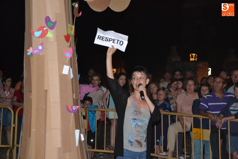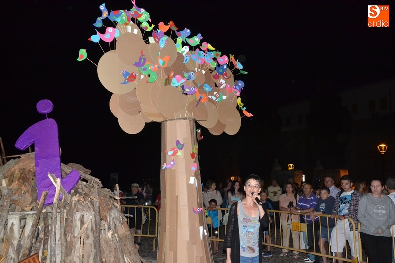 A cambio, sonó buena música desde el momento en que empezó a arder la hoguera, que estuvo precedido por un manifiesto leído por la actriz mirobrigense Pilar Borrego, que habló sobre el significado de la Noche de San Juan, y varias vivencias personales en torno a la misma. Como conclusión de su intervención, Pilar Borrego colocó en el árbol su propio deseo, que estaba escrito en un papel en el que se leía con grandes letras 'Respeto'.