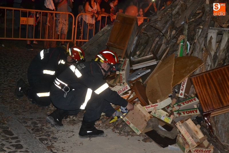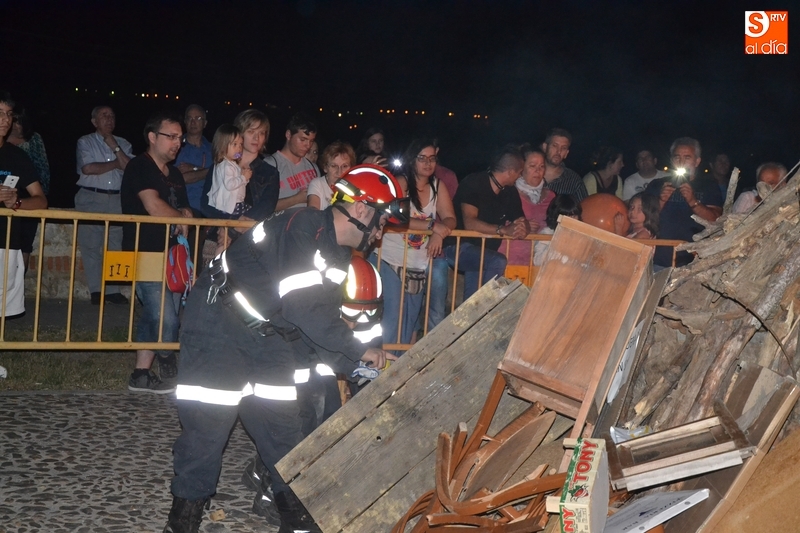 Los bomberos de Ciudad Rodrigo se encargaron de prender la hoguera, aunque sólo la pira central de madera, dejando que el Árbol de los Deseos ardiera a partir de las llamas del otro bloque. Este Árbol, hecho a base de cartón, se vino rápidamente abajo, a la par que el calor comenzaba a ser creciente, con lo cual todo el mundo fue alejándose de la hoguera. Incluso los que estaban viéndola desde la muralla sintieron ese intenso calor.