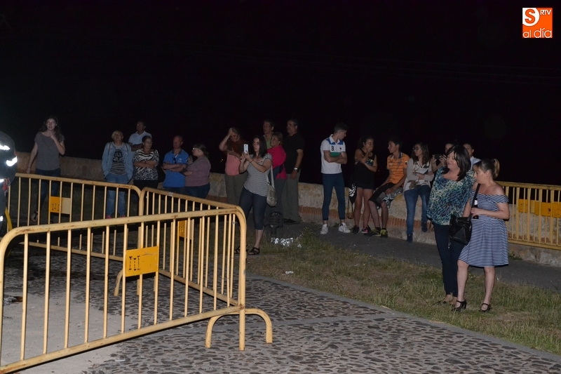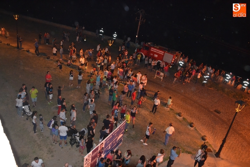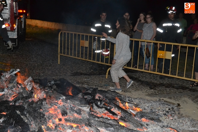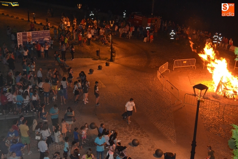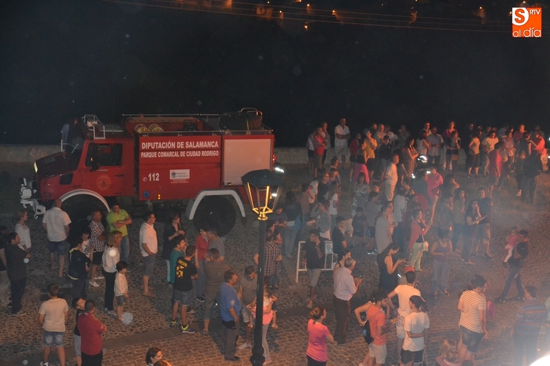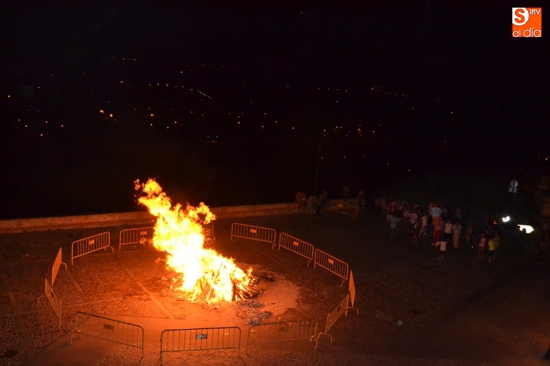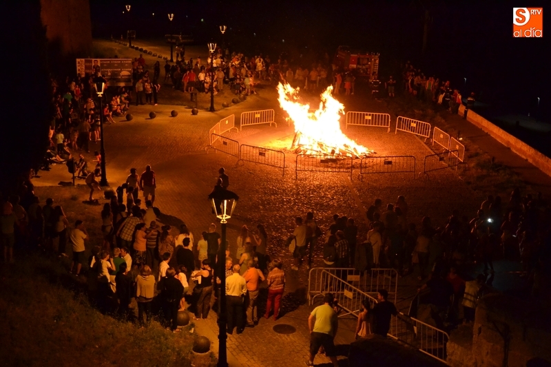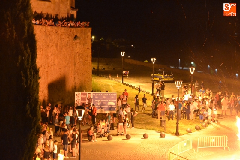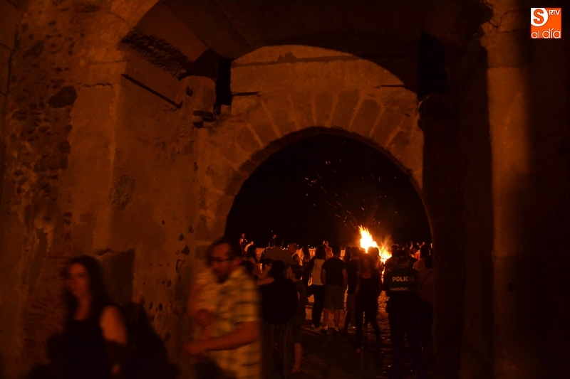 Ciudad Rodrigo volvió a celebrar a lo grande, unas dos décadas después, la noche más corta y mágica del año, la de San Juan, con una hoguera en la Puerta de Santiago que parecía en cierta medida 'pequeña' pero que rápidamente desprendió tal calor que los numerosísimos mirobrigenses que se habían congregado allí fueron retrocediendo hacia atrás para coger distancia con el fuego.