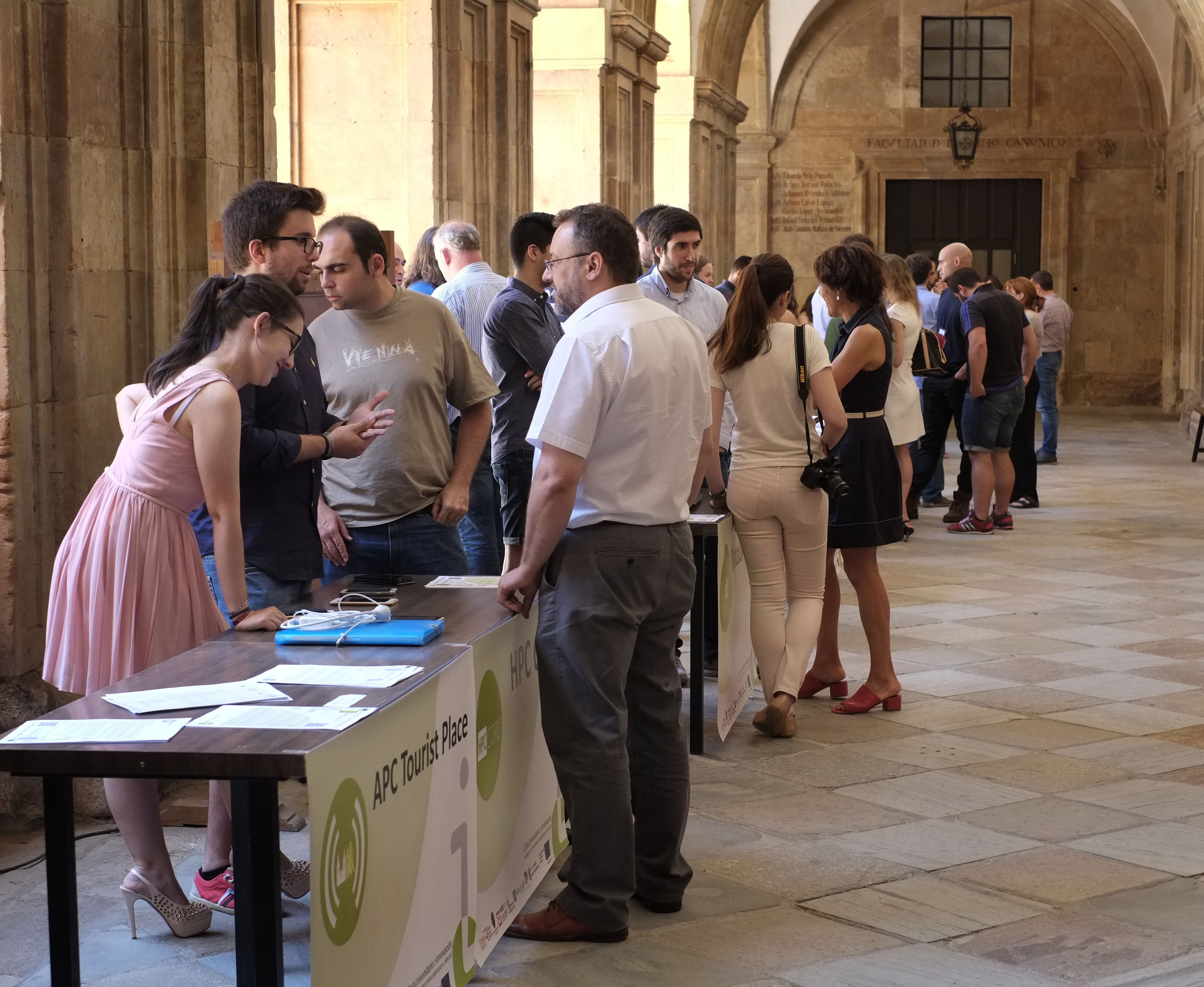 Posteriormente, tuvo lugar una exposición pública de los alumnos autores de estos proyectos. En esta ocasión han sido doce las iniciativas que se han presentado y que nombramos a continuación: APC Tourist Place, conteo de individuos en espacios públicos; City Catched, tecnología de reconocimiento para identificar edificios; DataUPSA 1.0, apertura de datos abiertos utilizando tecnologías semánticas; Fiesta Charra, aplicación para Smartphone de información sobre el ocio nocturno de Salamanca; HPC Core, mejora de la aplicación HPC M-Computing para dispositivos móviles; KidBeacon , aplicación para iOs con tecnología Beacons para localizar a los niños en sitios públicos o excursiones; PetSaver, aplicación dedicada a gestionar y administrar avisos de denuncias, pérdidas o abandonos de animales, sirve de intermediario entre personas y refugios, geolocalización de lugares de interés para mascotas, etc; Plotting, app para niños con autismo donde pueden desarrollar sus propias historias de manera creativa; SICOIN, generación de conocimiento en función de los usos o costumbres de los ciudadanos, en concreto en los autobuses urbanos; Test, herramienta de generación de test sencilla y que aporta resultados al momento; Vente, proyecto web que une a pequeños grupos de forma espontánea para realizar una actividad deportiva y Virtual Token, aplicación para dispositivos móviles de la técnica de la economía de fichas (token economy).