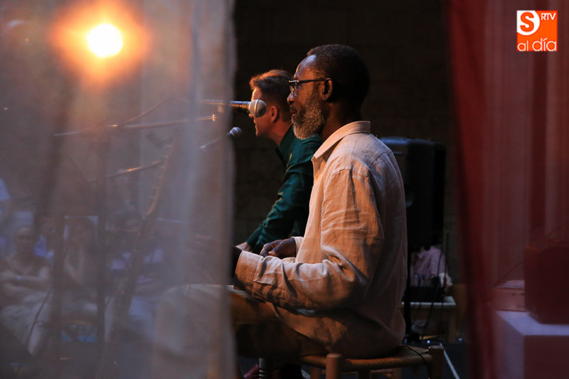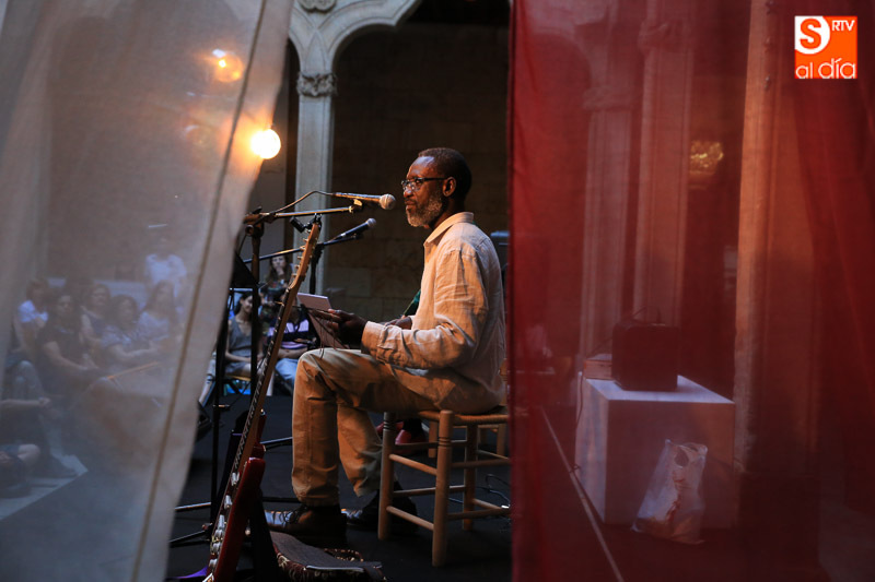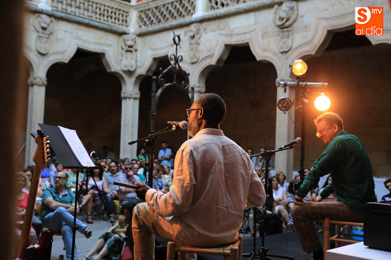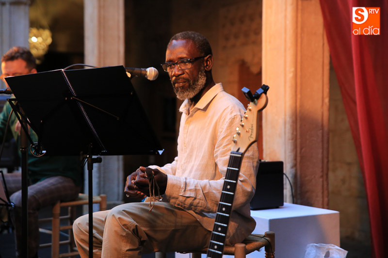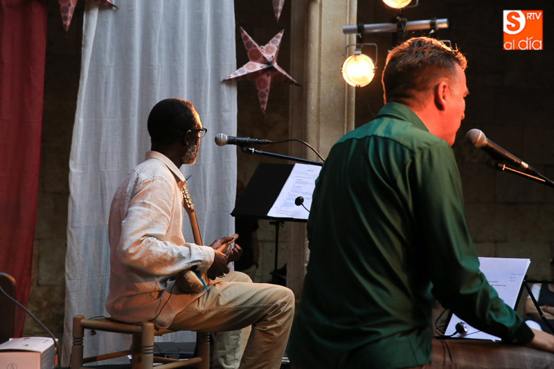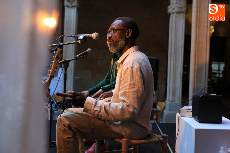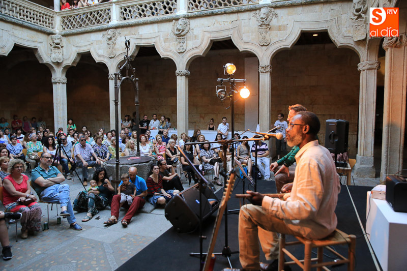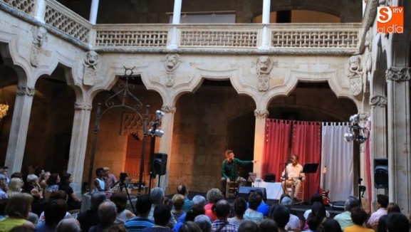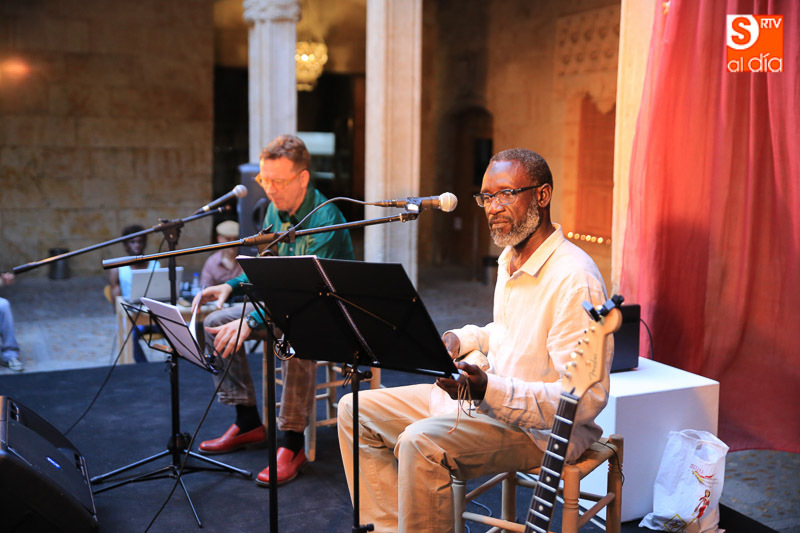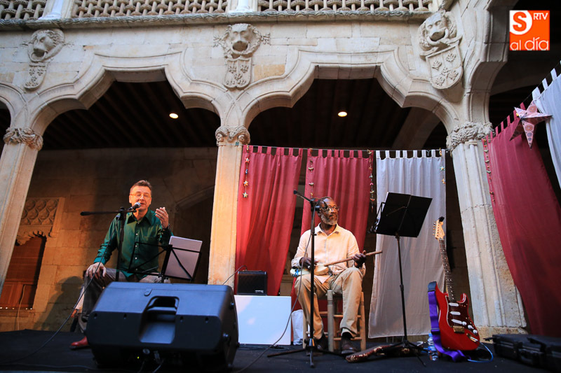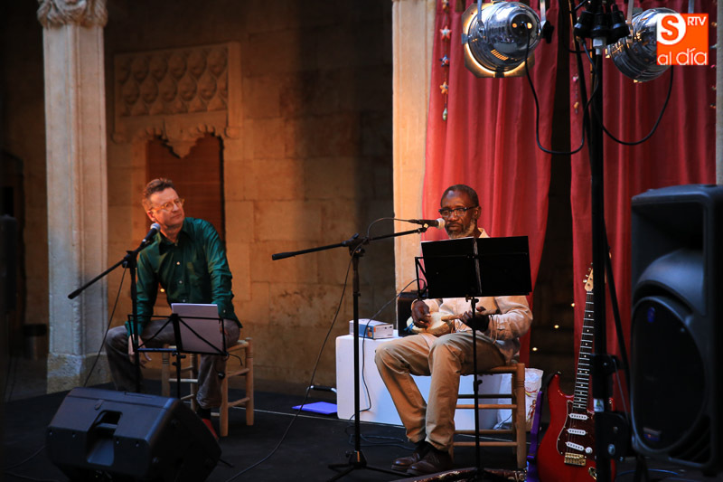 El patio de la Casa de las Conchas sigue con las actuaciones del Festival Contando Cuentos, que hoy ha contado con 'Tropofagias' con Juan Figueroa e Insa Diasse (Salamanca/Senegal).