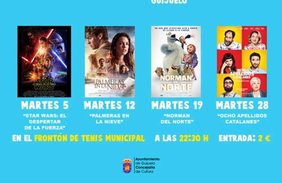 'Star Wars VII: El despertar de la fuerza' será la película elegida para iniciar el ciclo de cine de verano esta temporada. Con el título de 'Cine bajo las estrellas', la concejalía de Cultura ha preparado la proyección de cuatro filmes en el Frontón de Tenis Municipal para el mes de julio. Las proyecciones, que se podrán ver todos los martes a partir de las 22,30 horas por un módico precio de 2 euros, retoman de este modo el ciclo de cine de invierno que, finalizaba en el teatro del Centro Cultural el pasado 30 de mayo.