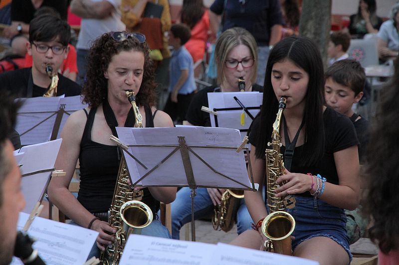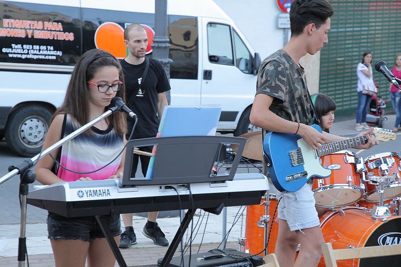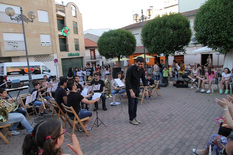 La Plaza de Julián Coca se convertía esta tarde en el escenario elegido por la Escuela Municipal de Música para poner punto y final al curso escolar con una actuación al aire libre. Clarinetes, trompetas, tubas, platillos y saxofones, entre otros instrumentos, inundaban de música este rincón de Guijuelo en una tarde plenamente veraniega que invitaba a disfrutar de la calle. Se ponía así el punto y final a una serie de audiciones que comenzaban el pasado 13 de junio en el Centro Cultural y que permitieron, a lo largo de una semana, conocer el trabajo realizado durante los últimos meses. Erika González, Mª Carmen Ingelmo, Diana Hernández, Sandra Corral, Diego Hernández, Estela Gómez, Hugo Sardón, Mario Sánchez, Alberto Ramos, David Hernández, Ray Rodríguez, Celia Martín, Sara Campos, Arantxa Iglesias, Daniel Revilla, Carlos Javier Tejedor, Francisco González, Javier Rubiales, Juan Ramón Gómez, Alexandra González, Esther Benito, Carlos Luengo, Darío Hernández, Saúl Hernández, Julio Pascual, David Fraile, Valeria Gutiérrez, Aliana Campos, Nerea Antona, Marcos Alonso, Alejandro Sánchez, Jaime Merino, Víctor Rodríguez, Alexia Rivas, Julio Casquero, Marta Sánchez, Gabriel Fernández, Diana Hernández, María Hernández, Eva González, Paula Sánchez, Ángel Díaz y Elvira González, fueron algunos de los alumnos que durante esos días pasaron por el escenario para mostrar sus habilidades con distintos instrumentos. Esta tarde, una buena representación de ellos volvía a emocionar con la interpretación de piezas clásicas y modernas, ante la atenta mirada de familiares y amantes de la música.