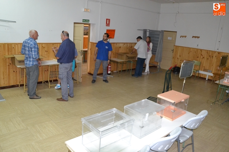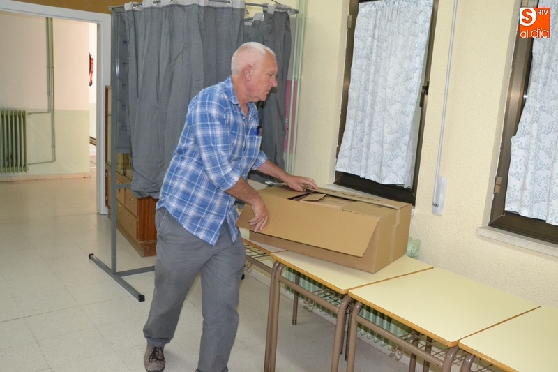 Operarios del Ayuntamiento de Ciudad Rodrigo estuvieron preparando durante la tarde del viernes los espacios donde los mirobrigenses podrán votar en las Elecciones Generales del próximo domingo 26 de junio.