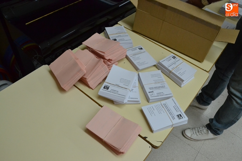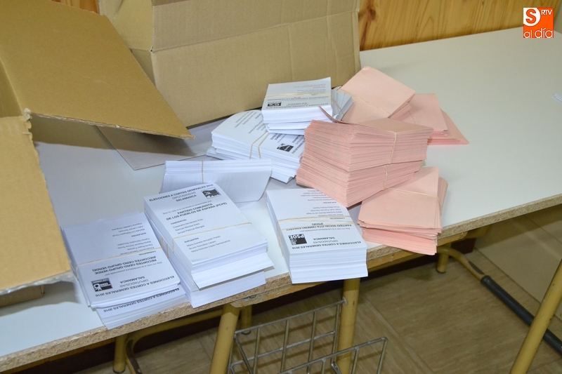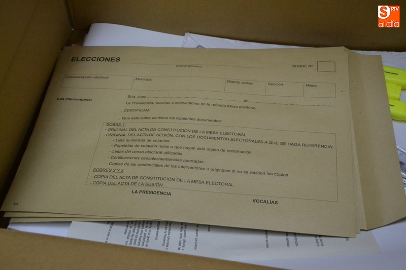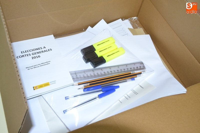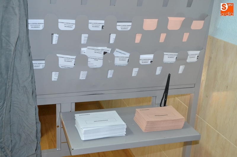 En cada uno de esos espacios procedieron a colocar el material remitido por la Junta Electoral, que incluye, además de las papeletas de los 9 partidos que se presentan esta vez al Congreso por Salamanca (dos menos que en diciembre), y las hojas sepias para votar al Senado, las listas del censo electoral, la guía de instrucciones, reglas y rotuladores para ir señalando a los que votan, o un bolígrafo por mesa para colocar en las cabinas electorales.