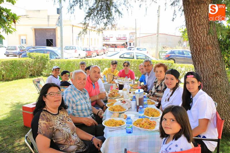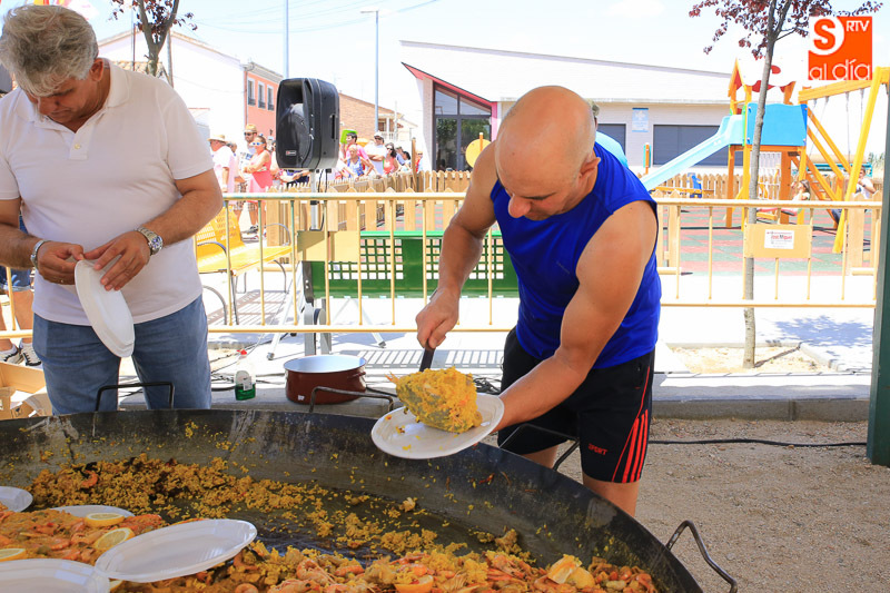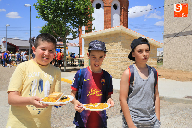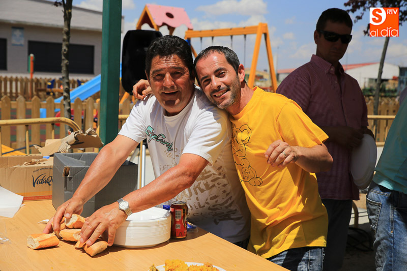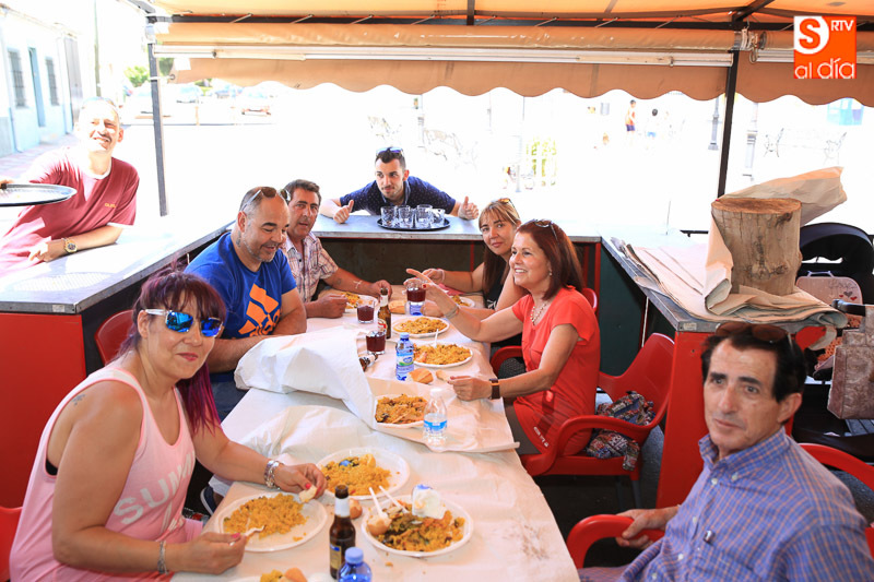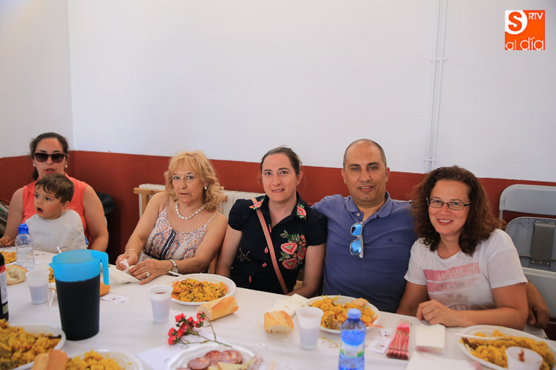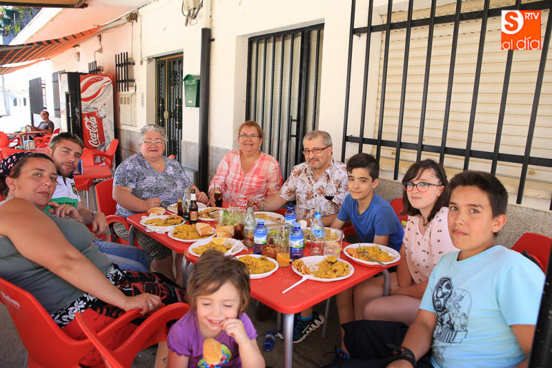 Nada como un buen plato de paella para reponer fuerzas y, en este caso, para celebrar el día del patrón San Juan Bautista en Pelabravo. Y precisamente esto es lo que han hecho los vecinos y amigos del municipio este viernes, disfrutar del buen yantar a base de arroz. Una invitación solidaria, porque lo recaudado (donativo de un euro) se destinará a la Asociación Cavalier.
