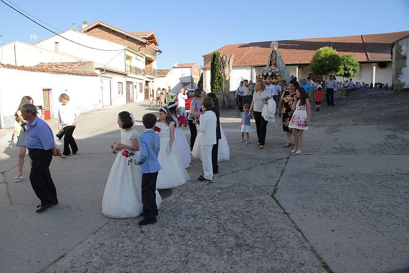 Santibañez de Béjar cumplió con la tradición ayer con la procesión de la imagen de la Virgen de Valparaiso, llevándola desde la iglesia parroquial hasta la ermita de la localidad, situada en las afueras. El acto religioso tuvo lugar tras la misa, en la que participó el coro local y los niños de Primera Comunión, quienes abrieron el paso junto con el estandarte de la virgen. Una vez en la ermita, y tras devolver la imagen al interior del templo, se ofreció un convite a base de dulces tradicionales y sangría.