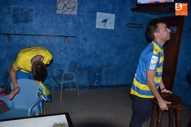 Tras el 1-0 cosechado por el Cádiz en la ida en el Ramón de Carranza, dos jóvenes aficionados mirobrigenses se dieron cita en el Pub El Arco para seguir el decisivo encuentro en pantalla gigante. Las cosas salieron de nuevo bien en Alicante, ganando los gaditanos por otro 0-1, lo que les permite regresar a la División de Plata del Fútbol Español.