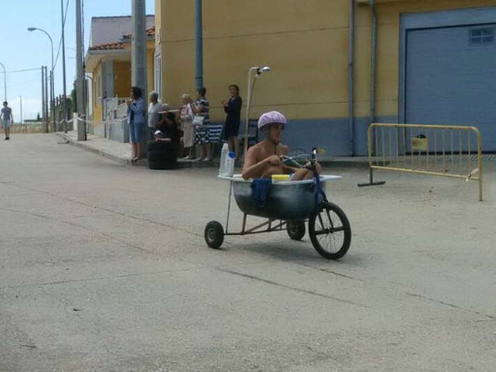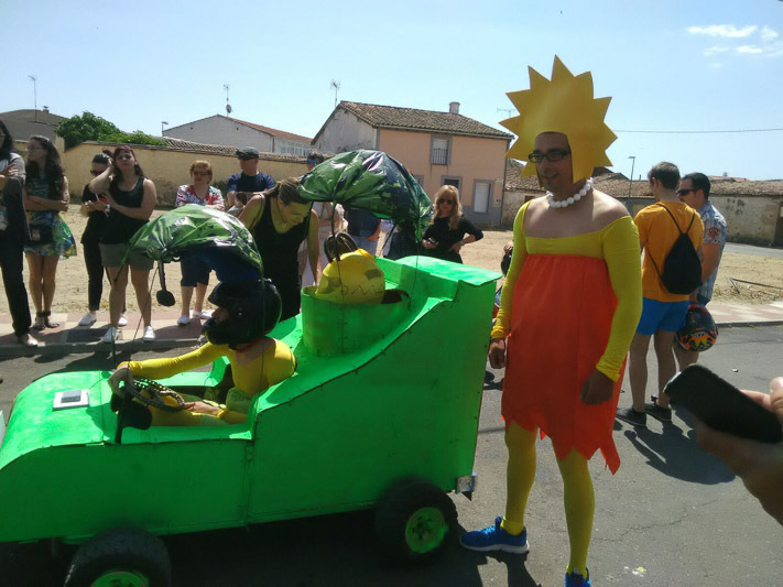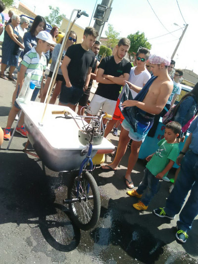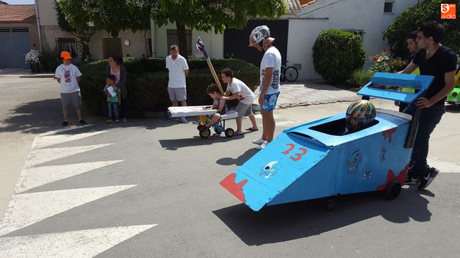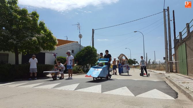 Las Fiestas de San Juan Bautista, en Pelabravo, han inluido este domingo una divertida carrera denominada 'de autos locos', en la que los asistentes y el numeroso público que ha seguido la peculiar carrera, con premio a la velocidad y a la originalidad, se ha divertido con las demostraciones de estos originales artilugios, ya que los siete participantes han tenido que demostrar su creatividad e imaginación para fabricarse su propio vehículo. El premio al artilugio más veloz ha sido para Álvaro Blanco, con el coche 'La pala', galardón dotado con 100e uros.