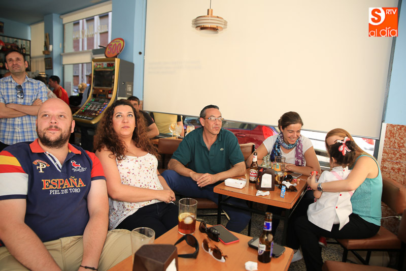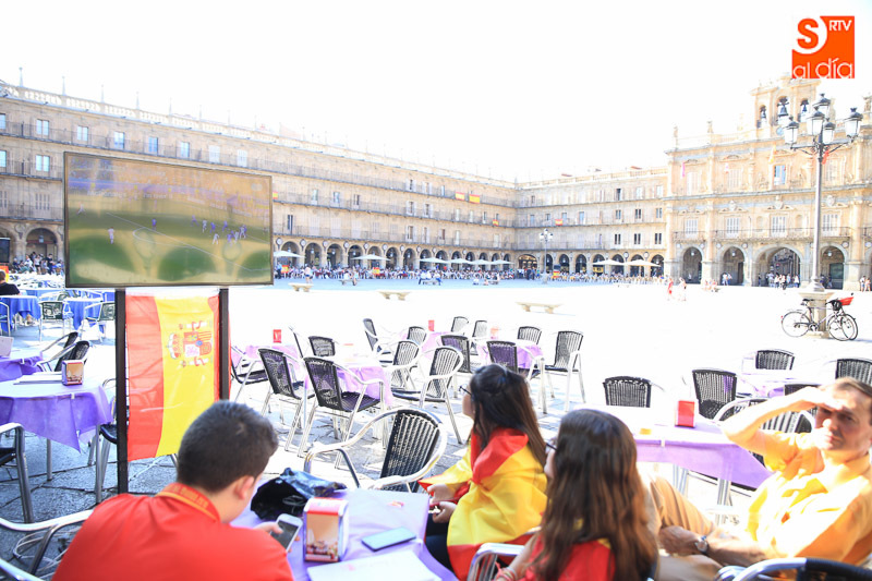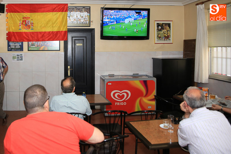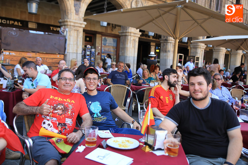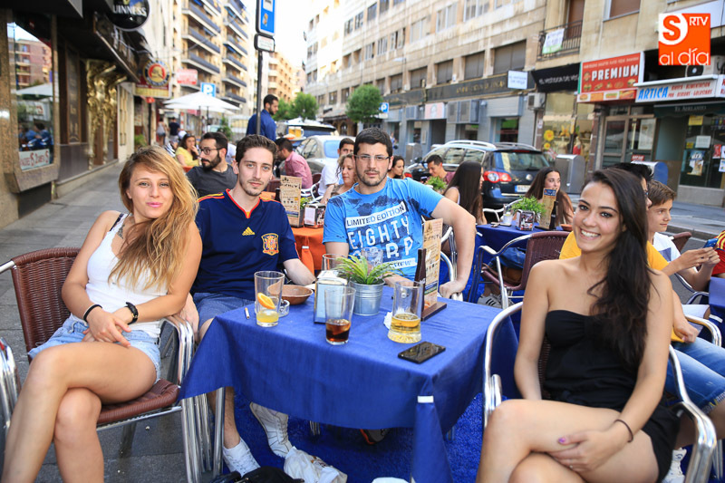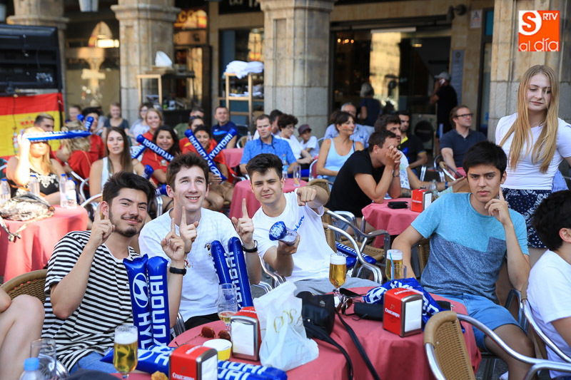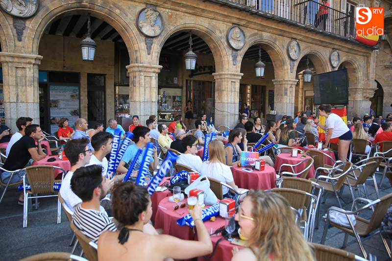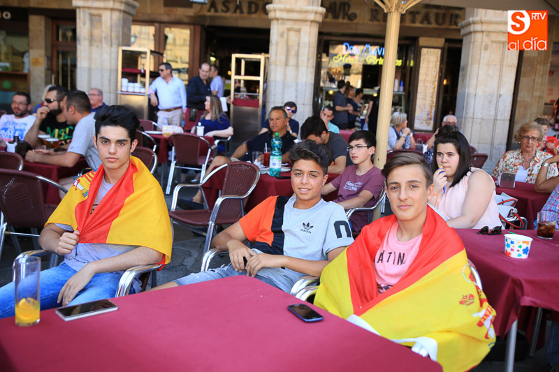 La capital salmantina no falló a su cita con el partido de la selección española. A partir de las 18 horas de este lunes, los bares, las cafeterías y las terrazas de la ciudad se llenaron para seguir el choque de los octavos de final de