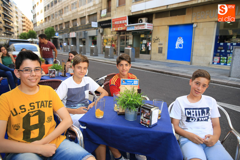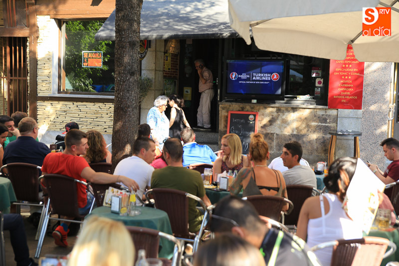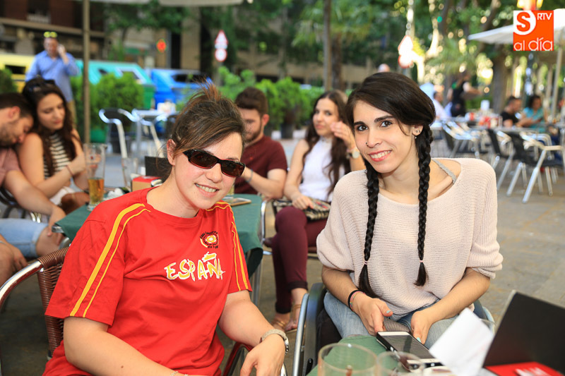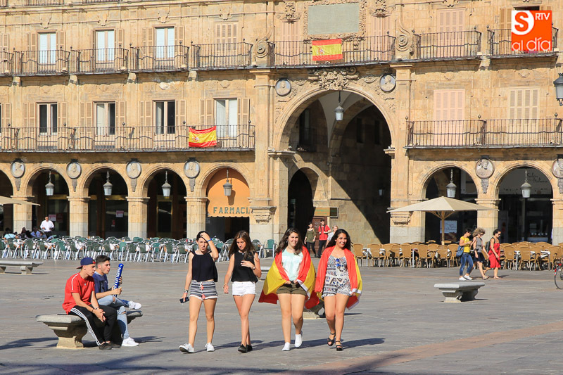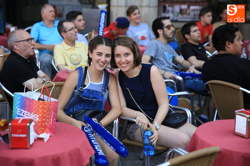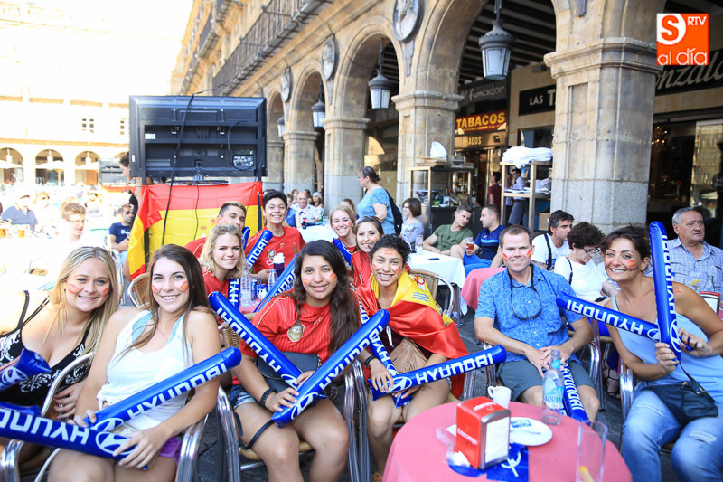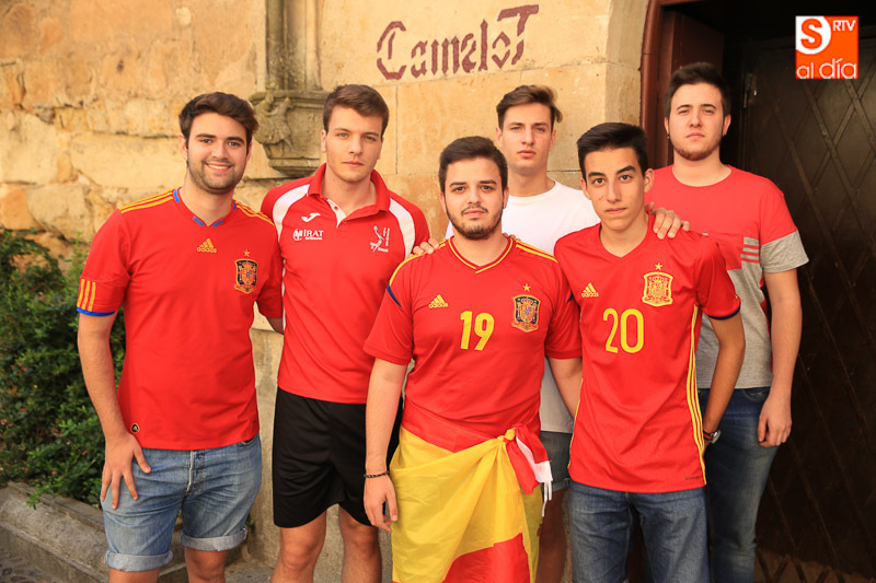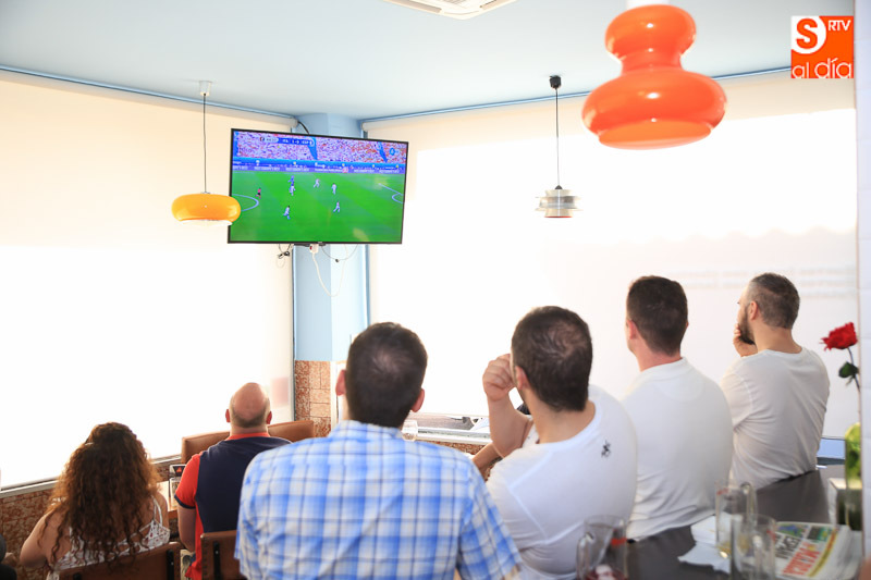 La capital salmantina no falló a su cita con el partido de la selección española. A partir de las 18 horas de este lunes, los bares, las cafeterías y las terrazas de la ciudad se llenaron para seguir el choque de los octavos de final de