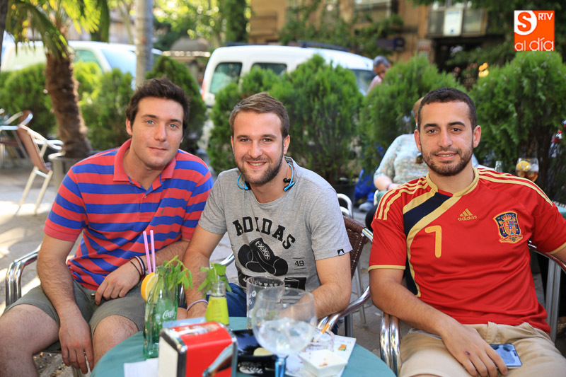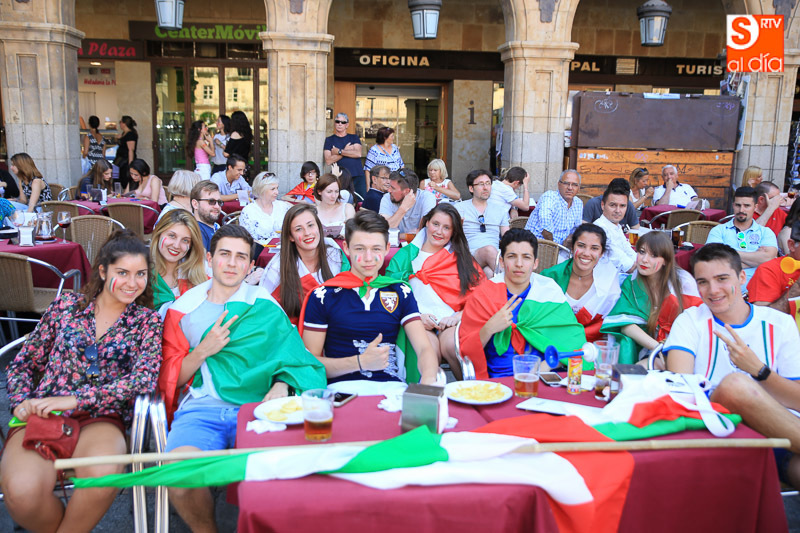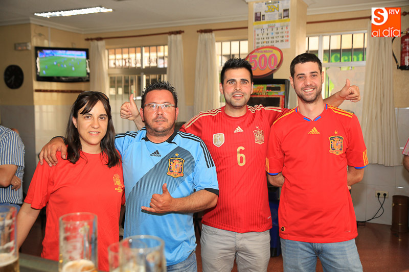 Emoción e ilusión para ver al equipo de Vicente del Bosque contra Italia. Vestidos con la 'roja' los aficionados al fútbol dieron color y calor en este día veraniego a la selección. El partido fue intenso con un conjunto transalpino que fue mejor en la primera parte. Nervios y sonrisas entremezcladas con cerveza y un buen aperitivo, lo mejor para pasar un buen rato pese a lo que indicase el resultado.