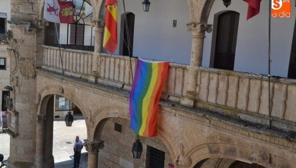 La bandera arcoíris vuelve a la balconada de la Casa Consistorial    | Imagen 1El Ayuntamiento de Ciudad Rodrigo colgó en la mañana del martes en la balconada de la Casa Consistorial la bandera arcoíris representativa del movimiento Lésbico, Gay, Transexual y Bisexual (LGTB), con motivo de la conmemoración, justo este martes 28, del Día Internacional del Orgullo LGTB.