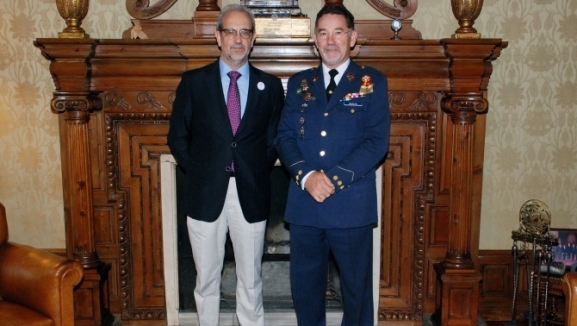 El rector de la Universidad de Salamanca, Daniel Hernández Ruipérez, ha recibido al coronel jefe de la Base Aérea de Matacán, Martín Pablo Marcos Seijas, que se despide de su cargo tras casi tres años.
