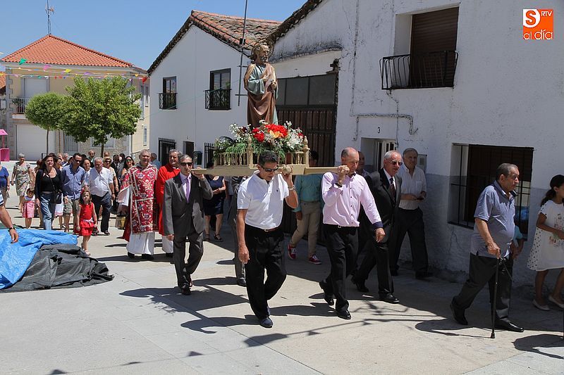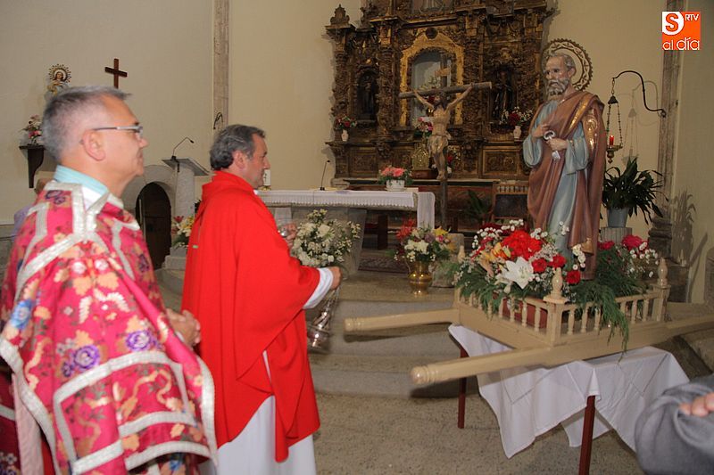 Tras la jornada de ayer en la que se celebró la tradicional reunión de los quintos con su carro y la ofrenda floral, hoy tuvo lugar la misa y procesión en honor a San Pedro. La iglesia parroquial acogió una celebración con la presencia de un más de un centenar de personas, quienes formaron la comitiva procesional que llevó la imagen del santo por las calles a modo de homenaje. Por la noche está prevista la verbena a cargo de la orquesta Estribo. Mañana, jueves 30, se celebrará la fiesta de San Pedro Chico, de nuevo con misa y procesión y verbena para los presentes.