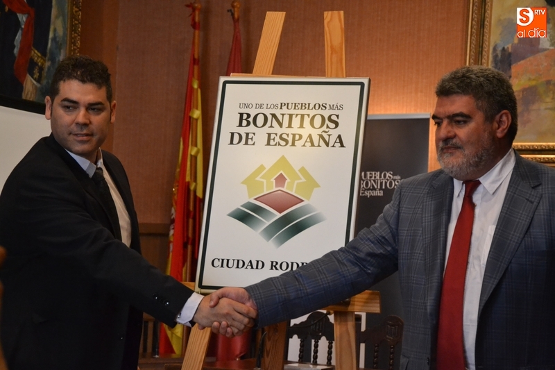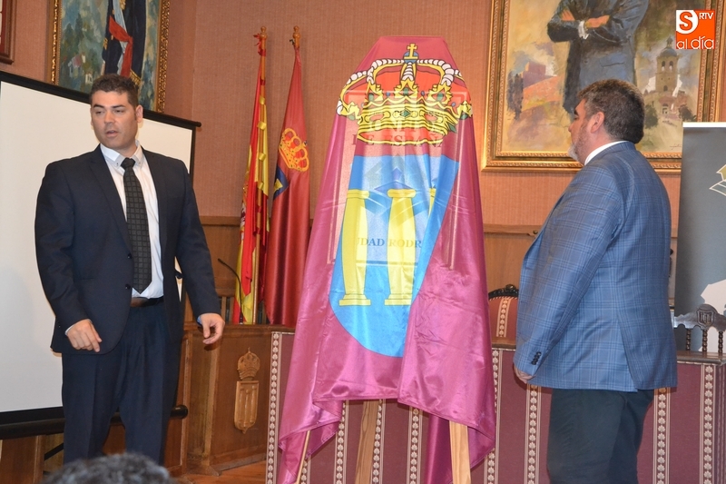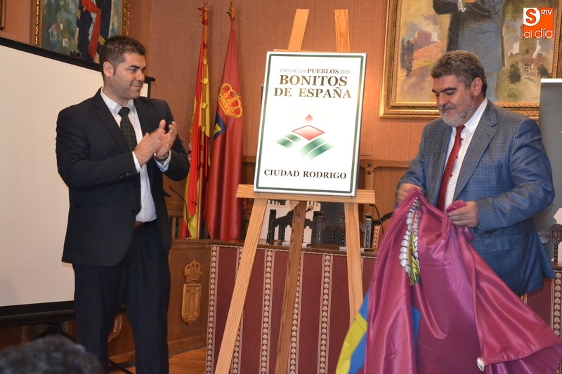 A continuación, Francisco Mestre y Juan Tomás Muñoz realizaron el simbólico descubrimiento de una de las 4 placas que se colocarán en los próximos días en las entradas al recinto histórico de Ciudad Rodrigo (también se colocarán cuatro de mayor tamaño en las entradas al núcleo urbano). El descubrimiento de la placa estuvo acompañado de un '¡Viva Ciudad Rodrigo!' por parte de Joaquín Sánchez 'Tato'.