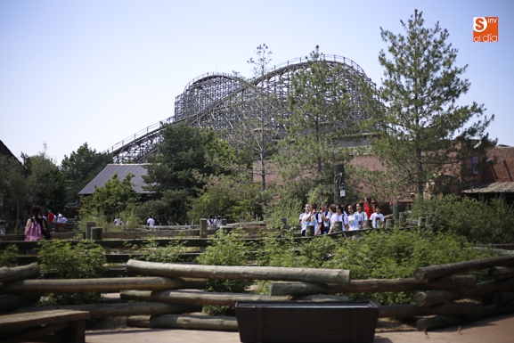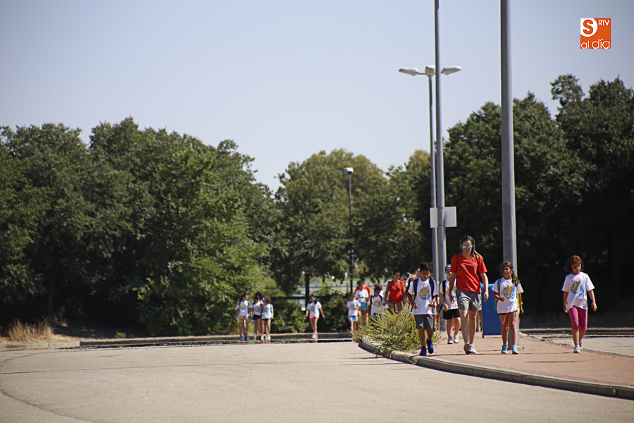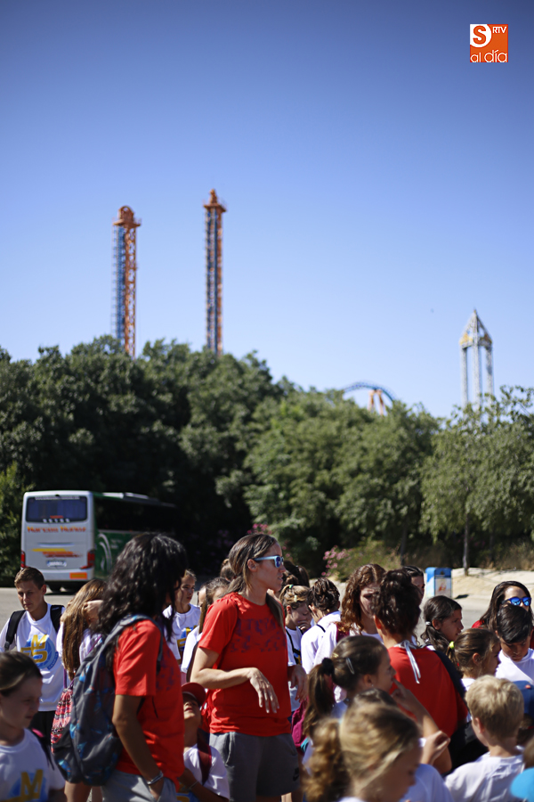 Unos camino de tierras madrileñas y otros que se iban a quedar en las instalaciones de Carbajosa. Así las cosas, el Campus Marta Fernández desarrollaría una actividad extraordinaria a la vez que continuaría con la rutina de trabajo. En Madrid, un sol de justicia, cataratas, superhéroes, el moderno Viejo Oeste, gritos entre árboles y subidas, bajadas y loopings. En Carbajosa, tranquilidad, chapuzones, entrenamientos y competiciones. En ambos espacios, e insistiendo por quinto día consecutivo, diversión e ilusión.