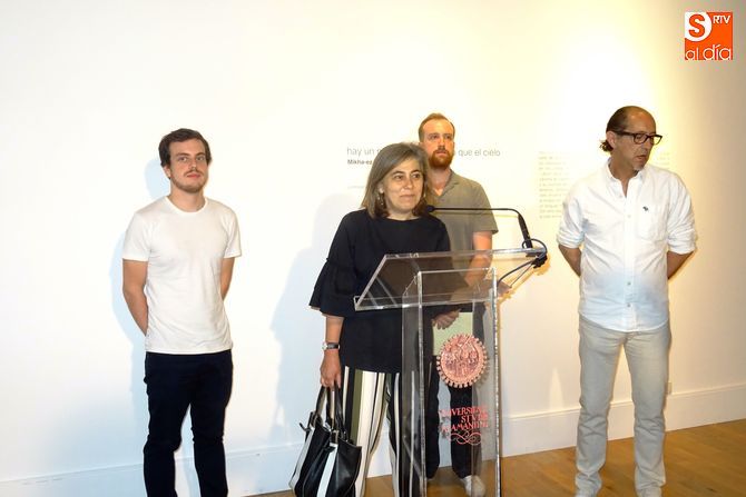 La Universidad de Salamanca ha acogido hoy la inauguración de la exposición 'Hay un mar que es más alto que el cielo', una muestra que ha sido creada de manera conjunta por Mikha-ez (Miguel González Díez), investigador en formación del departamento de Historia Medieval, Moderna y Contemporánea de la Universidad de Salamanca, y Cayetano Limorte, licenciado en Historia del Arte por la Universidad Complutense de Madrid, y que puede visitarse hasta el 29 de julio en la sala de exposiciones Cielo de Salamanca (patio de Escuelas Menores).
