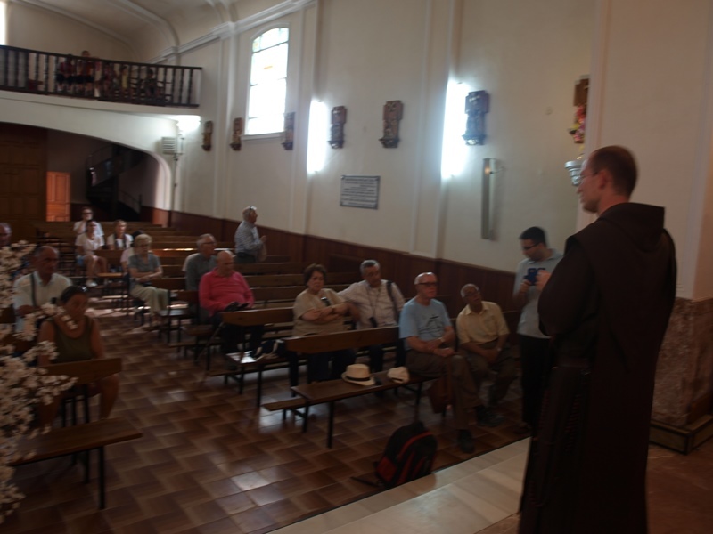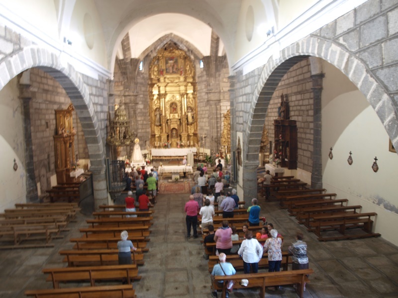 Allí en el salón de usos múltiples del ayuntamiento tuvo lugar la comida y el pueblo ya olía a fiesta con gran ambiente en bares y terrazas. Se visitó el mesón, hoy convertido en capilla, desde principios del siglo XX, donde por espacio de varios meses pernoctó la Santa y paseó por sus calles, la Fuente de Santa Teresa y el arroyó donde arrojó el amuleto, que los Becedeños siguen buscando, después de que la Santa se lo arrancara del cuello al cura que estaba amancebado y embrujado por una vecina de la localidad. En la iglesia parroquial, espectacular, tuvo lugar la celebración religiosa oficiada por siete sacerdotes, dos de ellos desplazados desde Alba de Tormes, Manuel Diego y el riojano, Rafael Pascual. El más orgullo fue el párroco de Becedas, y peregrino de esta ruta, Don Julio que se convirtió en el anfitrión.