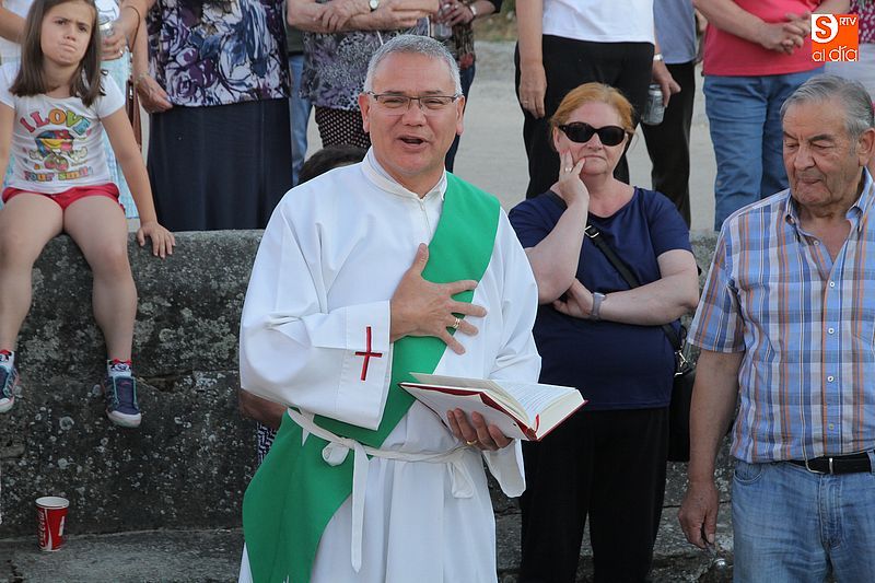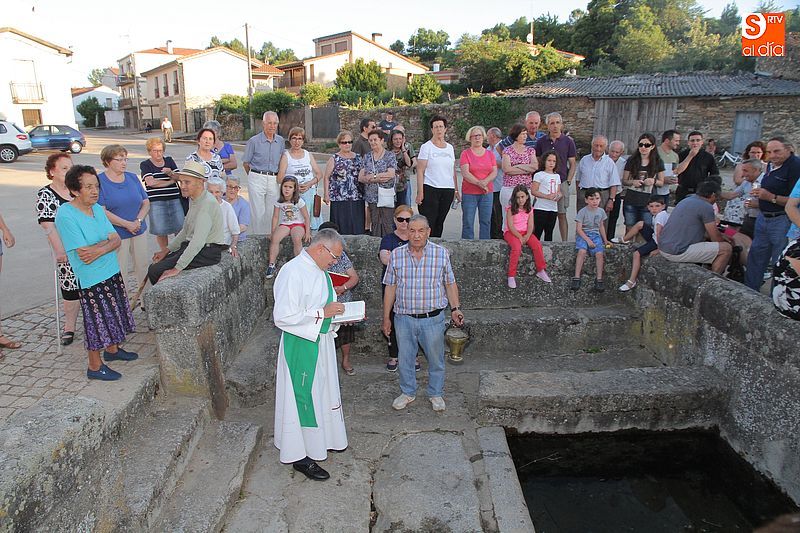 Antes de comenzar con la degustación, el párroco local ofició la bendición de la fuente local, que tradicionalmente se hace en la fiesta de San Isidro en el mes de mayo, pero que no se realizó debido a la liturgia conjunta oficiada en Los Santos.