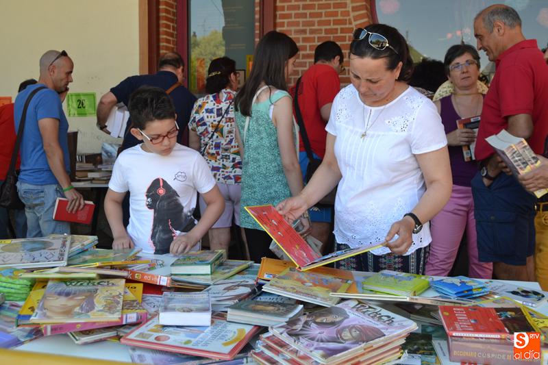 La mañana en el Mercadillo, como viene siendo habitual, se concibe como una mañana de fiesta en la que escuchar música, jalear al personal, conversar sobre libros y regatear, entre sonrisas, las ofertas de última hora.