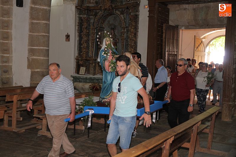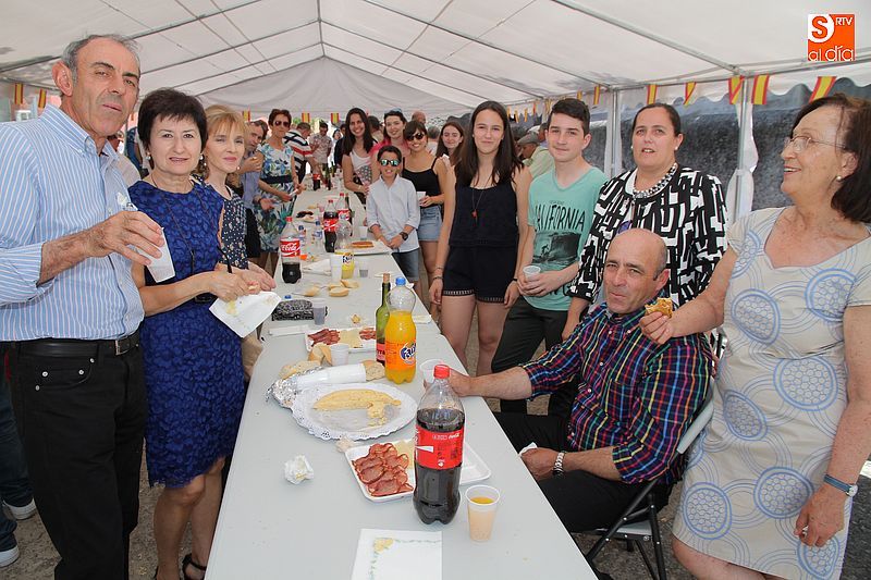 Las fiestas de Santa Isabel comenzaron con intensidad en Berrocal. Cerca de dos centenares de vecinos participaron en la misa en honor a la Santa y posterior procesión con su imagen. A continuación, los presentes se dieron cita en el centro social y compartieron un convite a base de empanadas, embutido, jamón y queso, además de refrescos y vino. Una carpa instalada en la calle del centro acogió a aquellos que desearon disfrutar del soleado día. Además de la corporación municipal, que participó al completo con el alcalde Manuel Ramos, se contó con la presencia de varios alcaldes de la comarca y de representantes del Ayuntamiento de Guijuelo. A las 18:00 horas se ofrecerán juegos hinchables y fiesta de la espuma para los más pequeños. Los mayores disfrutarán a su vez con el campeonato de calva, mientras que la jornada se cerrará con la verbena del grupo Oro Negro.