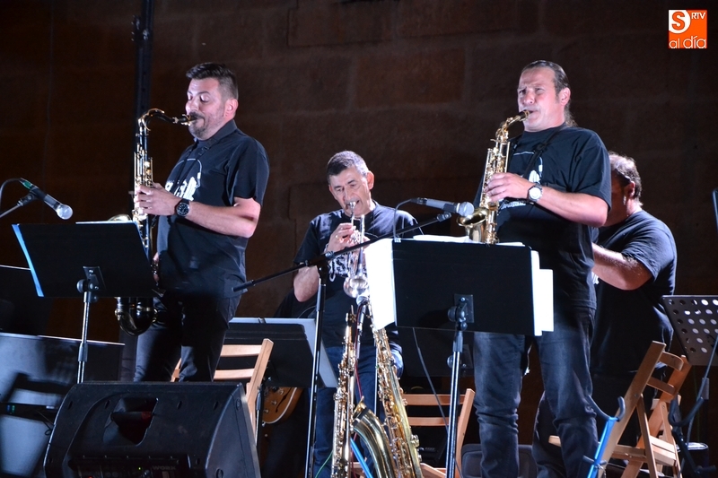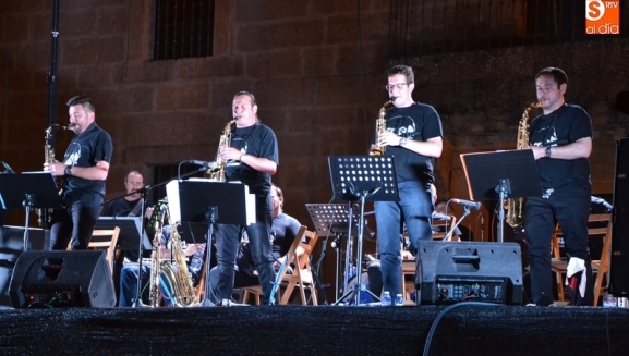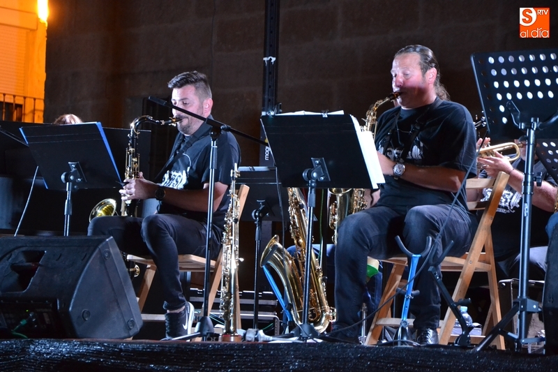 Con el cielo tranquilo y una agradable temperatura, la Plazuela se llenó de mirobrigenses dispuestos a disfrutar de un buen repertorio, que fue siendo explicado por José Carlos Pérez de Burgos, el director de la Escuela de Música, en cuyo seno ha nacido esta Big Band.