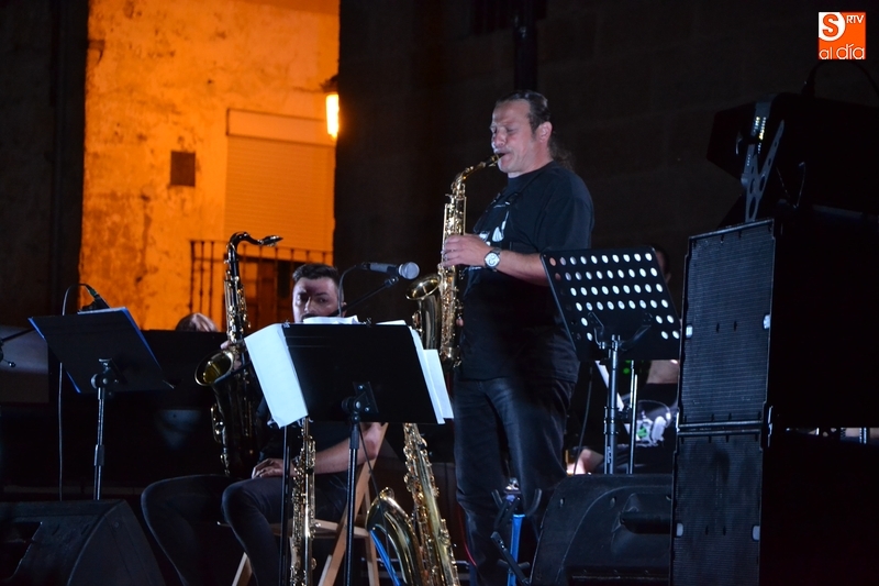 Los fuertes chaparrones que cayeron de forma intermitente a lo largo de la tarde del lunes en Ciudad Rodrigo estuvieron a punto de obligar a suspenderlo, pero finalmente la Barahona Big Band pudo desarrollar sin problemas en la céntrica Plazuela del Conde una vez caída la noche su primer gran concierto.