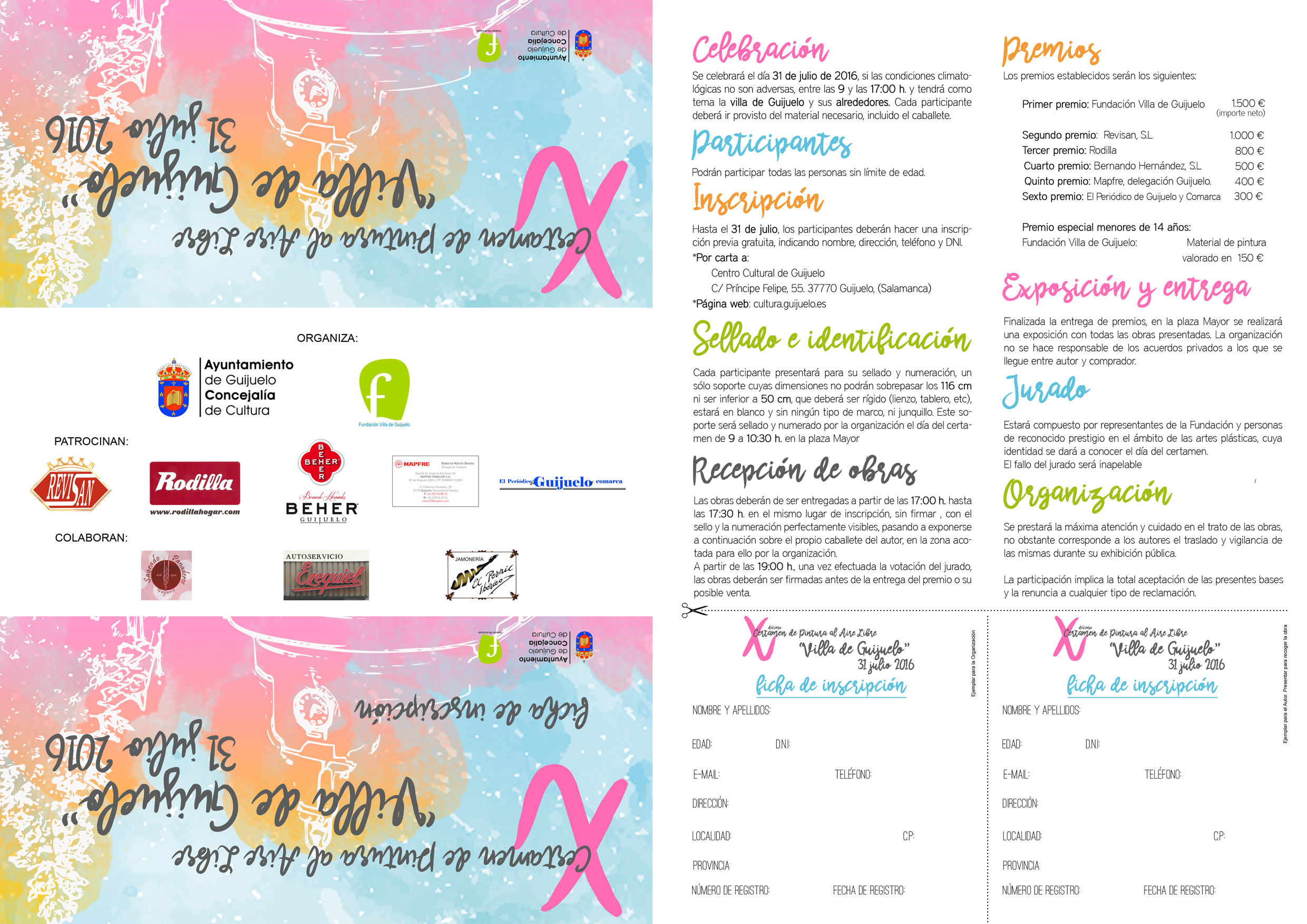 El plazo de inscripción ya está abierto, pudiendo realizarse por correo electrónico y tradicional en el centro cultural de la villa o bien la misma mañana del certamen. Al igual que en el resto de ediciones, el estilo artístico será libre y las obras tendrán como temática Guijuelo y sus alrededores. No existe límite de edad y la inscripción es gratuita. En el jurado estará presente el artista Muñoz Bernardo, además de otras personas reconocidas en el ámbito de las artes plásticas que se darán a conocer el día del certamen.