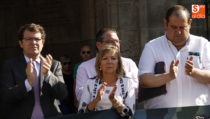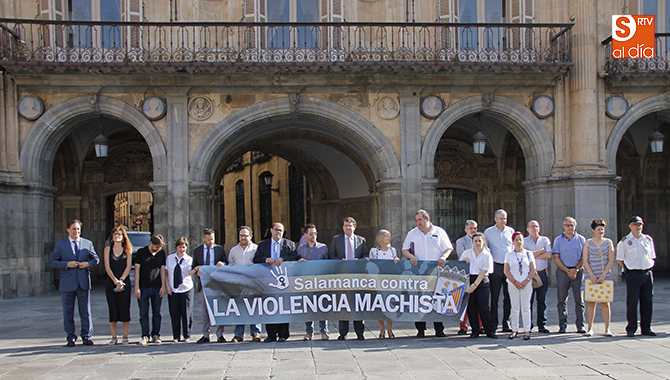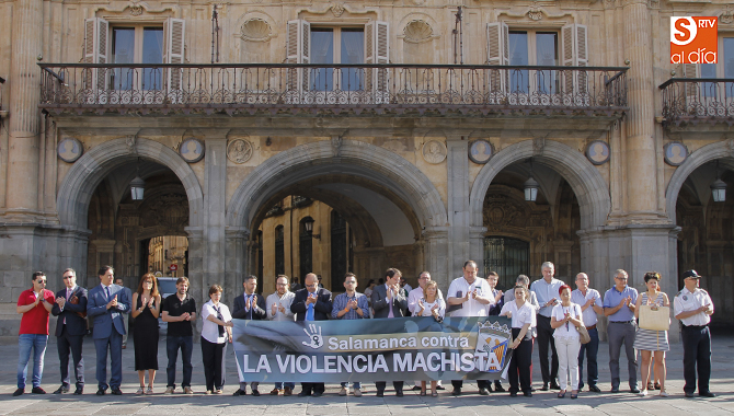 Concejales del Ayuntamiento de Salamanca han participado este martes en una concentración por el último caso de violencia machista con víctima mortal, que se daba el sábado en nuestro país, en concreto en Lepe (Huelva), donde Teresa Sánchez era asesinada presuntamente por su ex pareja, que fue detenido y puesto a disposición judicial.