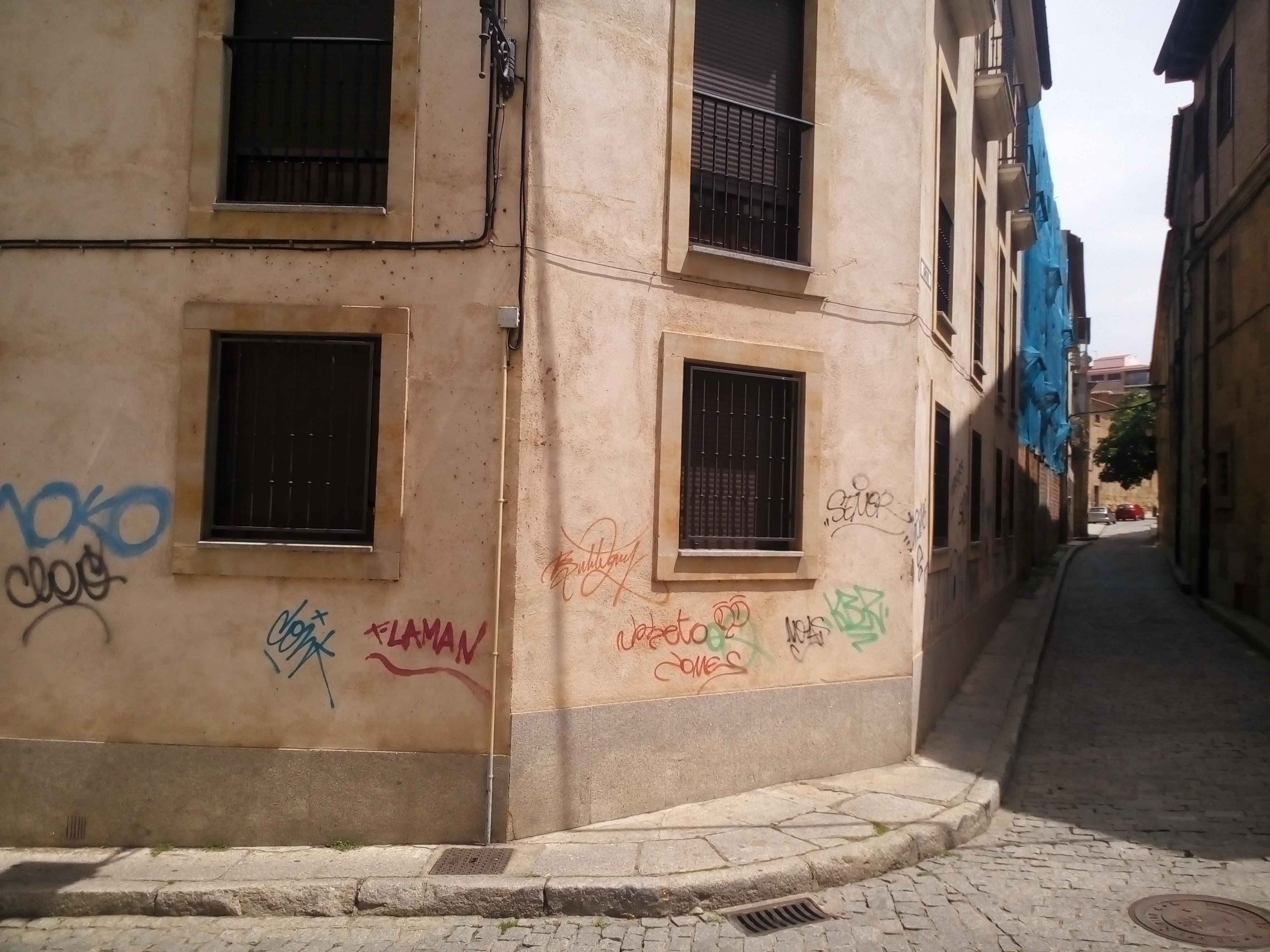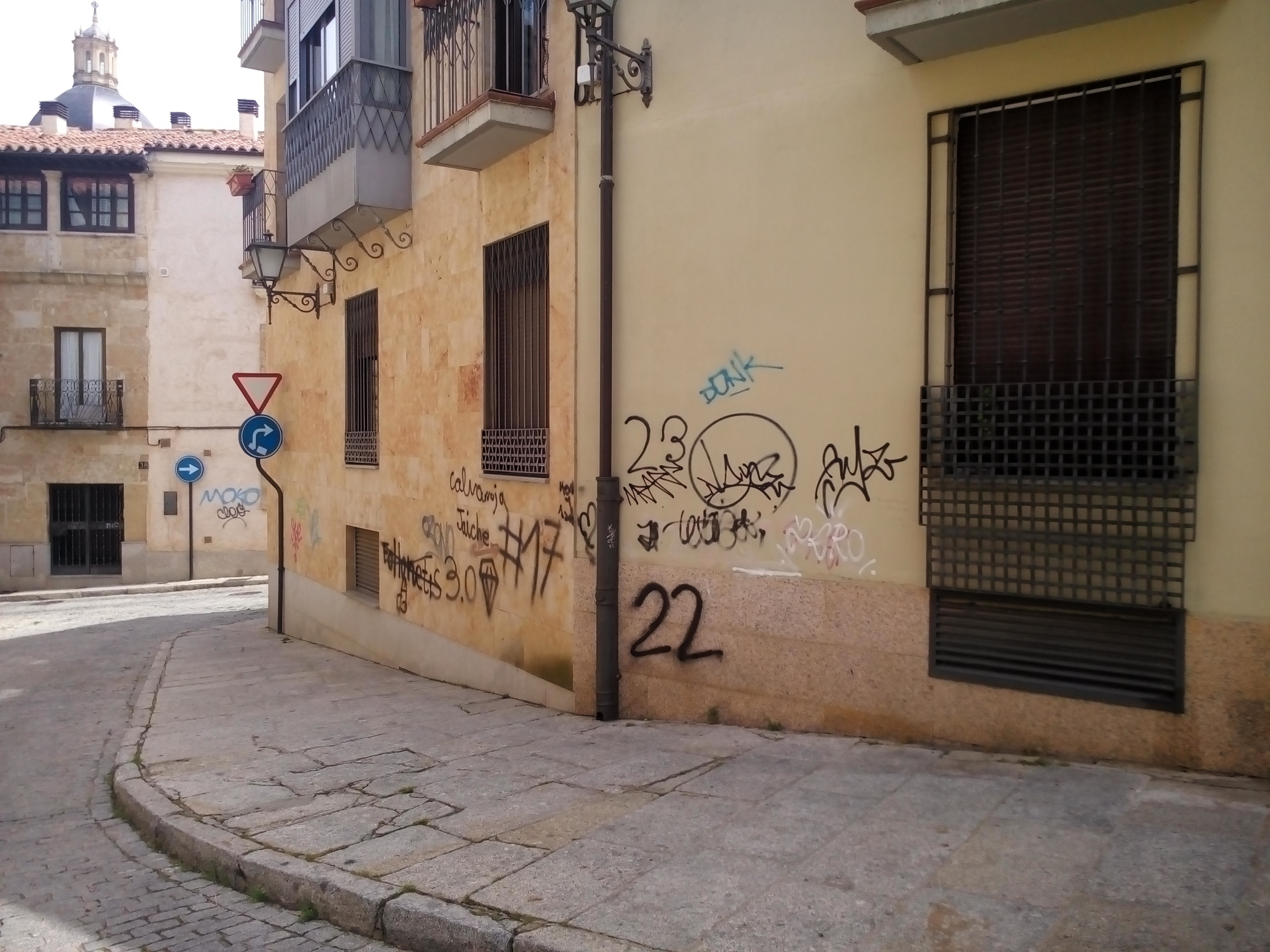 Los vecinos del casco histórico de Salamanca se quejan y lamentan la proliferación de pintadas en edificios y fachadas, que afean el Barrio Antiguo. Irónicamente, denuncian que "los magníficos graffitis compiten en hermosura con los del Barrio del Oeste, tan aclamado y aplaudido por la sociedad salmantina y que ha llegado a aparecer en diferentes medios y programas y suplementos culturales a nivel nacional, siendo un medio más para la atracción turística a nuestra maravillosa ciudad". Las pintadas son abundantes a lo largo del casco antiguo y pueden verse en las calles Cervantes, Rabanal o Carniceros.
