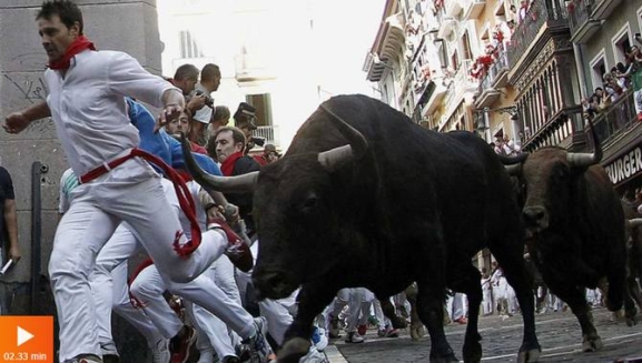 El momento de mayor peligro vino después de la Cuesta de Santo domingo cuando un toro jabonero despuntó del resto de la manada e imprimió mayor velocidad al encierro provocando numerosas caídas entre los corredores. A la llegada a Estafeta, el jabonero ya había sido absorbido por el grueso de la manada.
