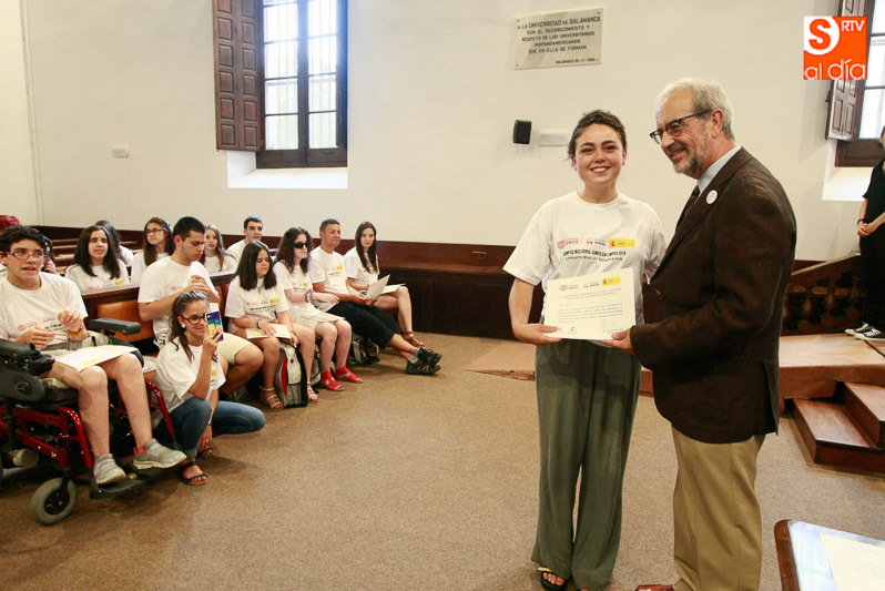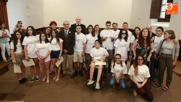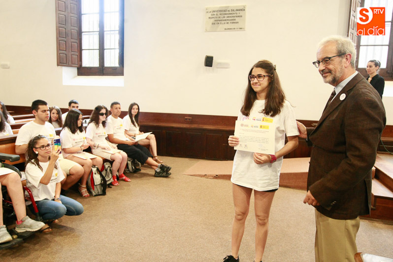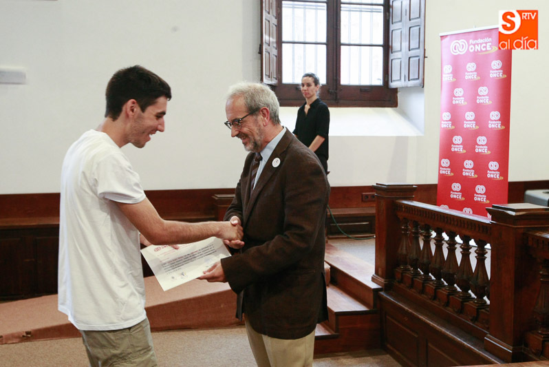 El rector de la Universidad de Salamanca, Daniel Hernández Ruipérez, ha clausurado esta tarde la edición de 2016 del proyecto 'Campus inclusivos, campus sin límites'. Al acto, celebrado en el Aula Francisco de Vitoria, también han asistido Isabel Martínez Lozano, comisionada para la Universidad, Juventud y Planes Especiales de la Fundación Once; William Dartland, subdirector de Programas Institucionales de la Fundación Repsol; Cristina Pita, vicerrectora de Atención al Estudiante y Extensión Universitaria de la Universidad de Salamanca, y José Antonio Fuertes, director del Servicio de Asuntos Sociales.