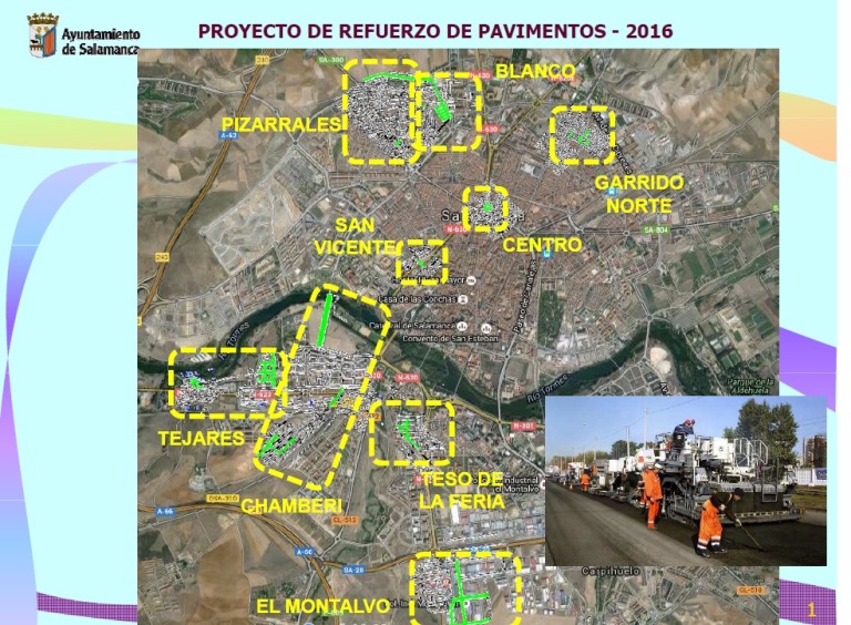 El Consistorio destinará 400.000 euros, un 22% menos respecto al presupuesto de licitación, a la renovación del asfalto en las calles seleccionadas de acuerdo con la propuesta que realizan los técnicos municipales y con las demandas de los vecinos a la vez que se ha priorizado las calles que son de hormigón. Se reforzará el firme en espacios de los barrios de Chamberí, Tejares, Teso de la Feria, Polígono Industrial El Montalvo, Blanco, Pizarrales, Garrido, Centro y San Vicente.