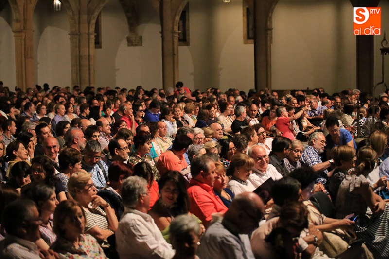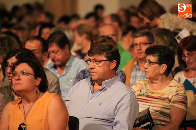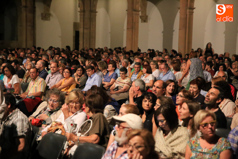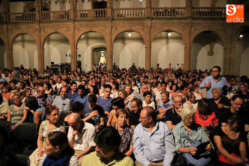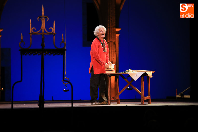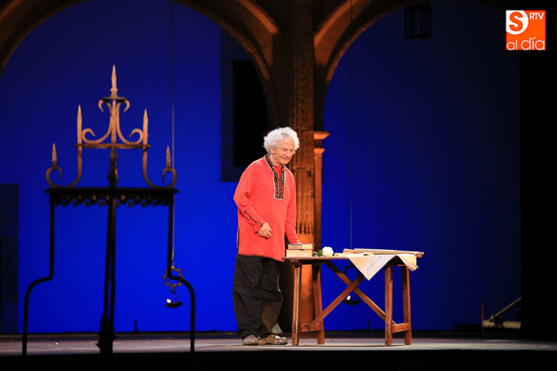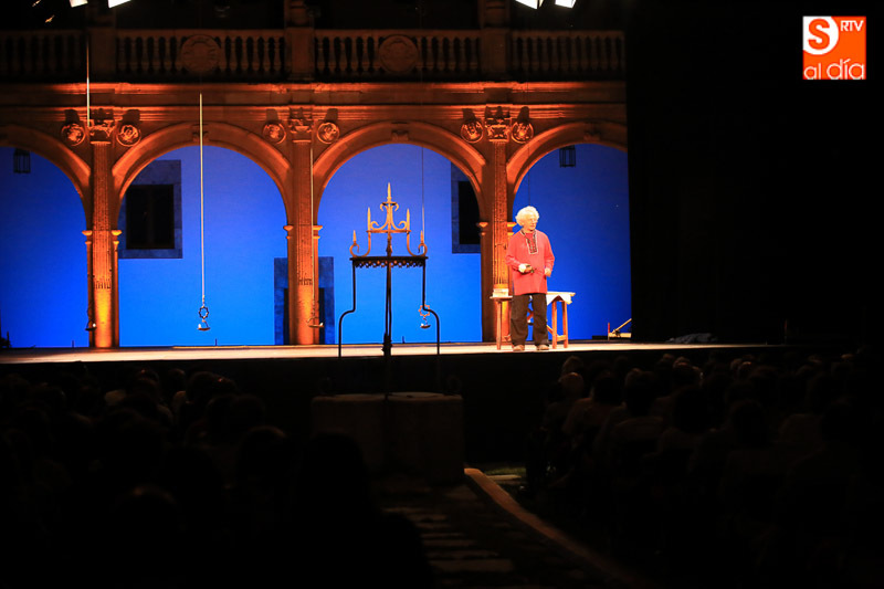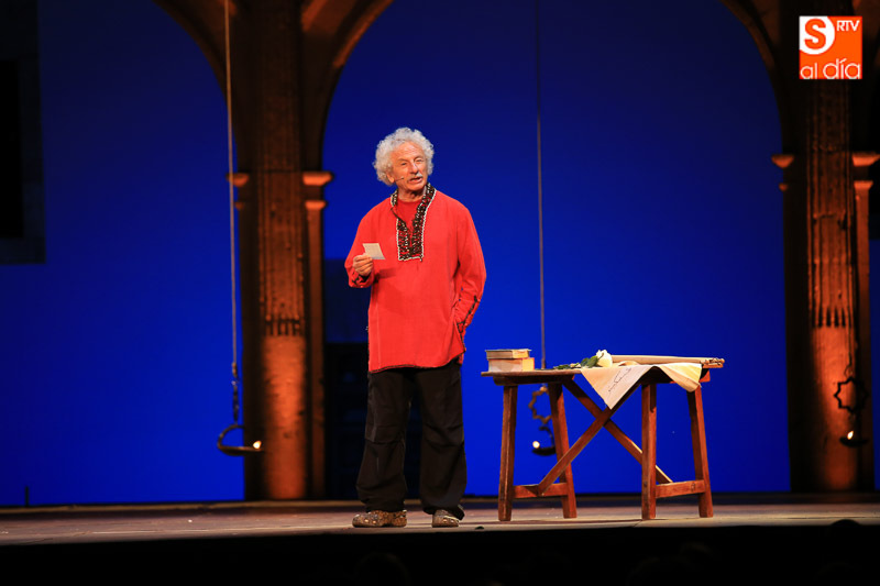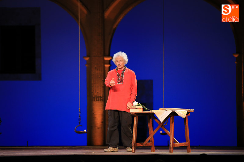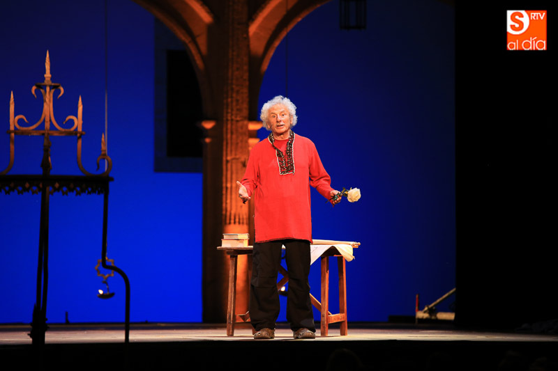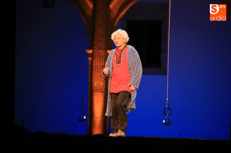 El patio del colegio Fonseca abrió este jueves, a las 23 horas, el programa de Las Noches de Fonseca con la representación de 'Los misterios de El Quijote', en una versión del dramaturgo ya habitual en el ciclo Rafael Álvarez, "El Brujo", que además será el personaje único de una trama que profundiza y divierte en la búsqueda de la esencia de la obra más reconocida de Miguel de Cervantes y de la literatura española.