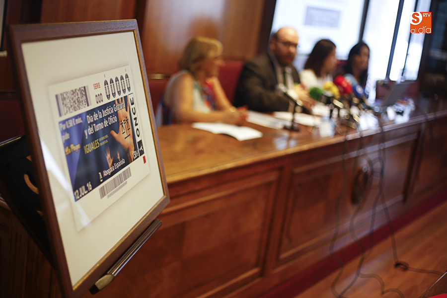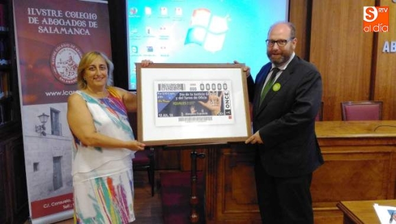 El próximo martes, 12 de julio, se celebra en España el Día de la Justicia Gratuita y del Turno de Oficio y la ONCE homenajeará con su cupón a este día tan señalado y de vital importancia para la sociedad que tiene menos recursos porque la Justicia es un derecho para todos. La directora de ONCE en Salamanca María Ángeles Ruano indicó que sacarán a la luz 5,5 millones de cupones y en el mismo se quiere reconocer el trabajo de 43.800 abogados de turno de oficio. Ella misma, además, le hizo entrega de un cuadro conmemorativo al decano con el cupón como protagonista.