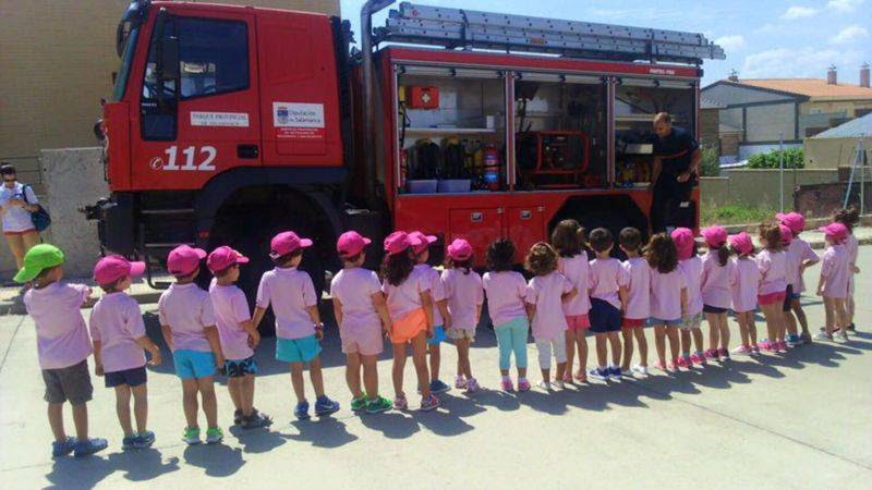Como cada viernes, los niños de Aldeacampus han visitado las instalaciones de CGB Informática en Aldeatejada, donde han podido disfrutar en su sala de cine 3D. Pero hoy además han recibido una visita muy especial. Los bomberos de la Diputación de Salamanca se han desplazado en su camión hasta las oficinas de CGB para pasar un buen rato con los más pequeños.