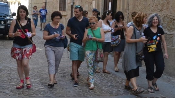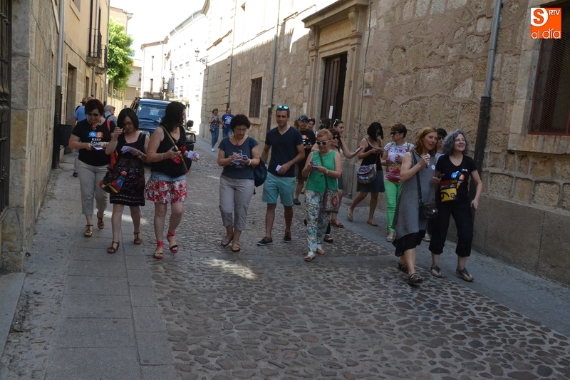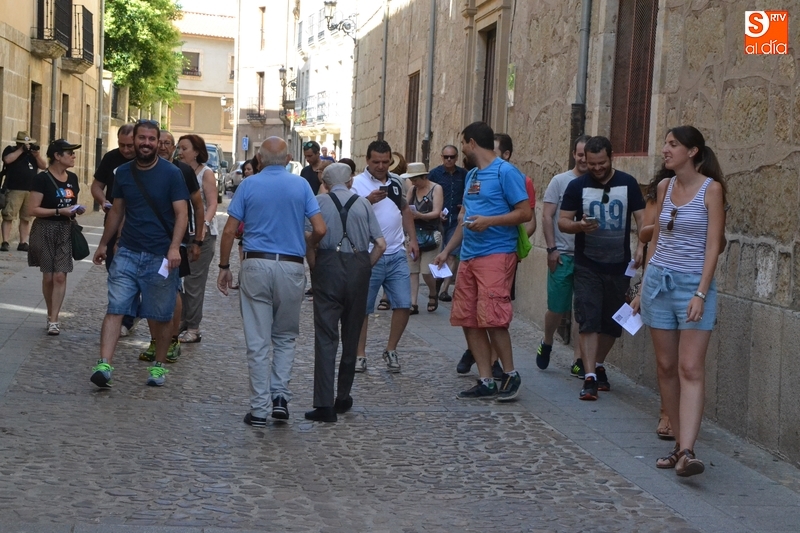 Una gymkana por el centro histórico abre el XI Encuentro Aulablog   | Imagen 1Como apertura del Encuentro, el centenar de personas participantes en el mismo (algunos de los cuales llegaron el jueves en Miróbriga) desarrolló durante la mañana del viernes una gymkana por el centro histórico, en el cual fue protagonista la arquitectura renacentista de la ciudad. Divididos en grupos, los participantes en Aulablog fueron asignados a distintos linajes familiares con el objetivo de buscar las referencias en torno a los mismos por el centro histórico.