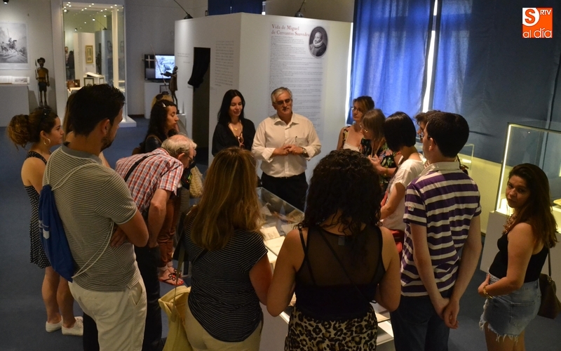 Entre esos visitantes estuvo Margarita Becedas, directora de la Biblioteca General Histórica de la Universidad de Salamanca, que esta misma semana ha cedido a la exposición tres volúmenes para comprender mejor la época en la que escribió Miguel de Cervantes. Estas visitas a la exposición fueron guiadas por uno de sus comisarios, Juan Carlos Sánchez.