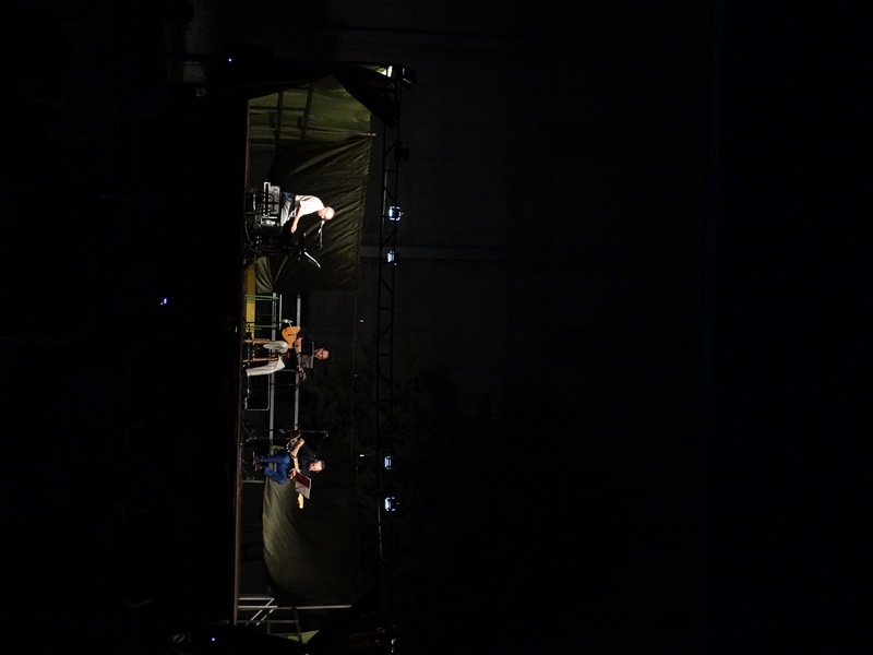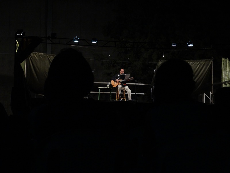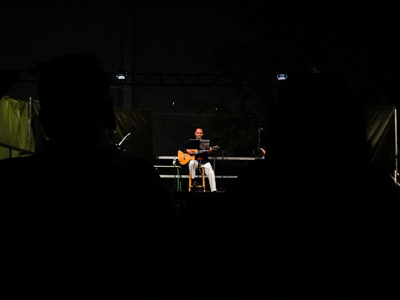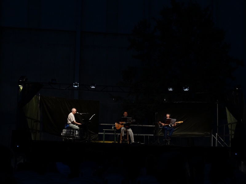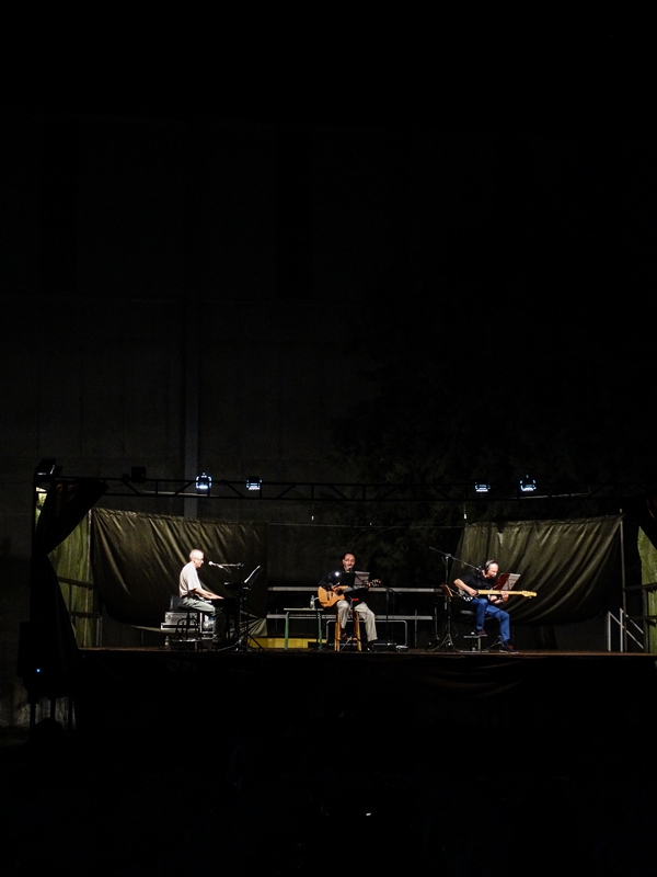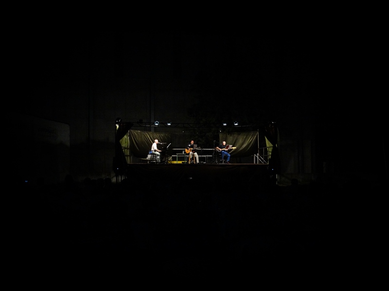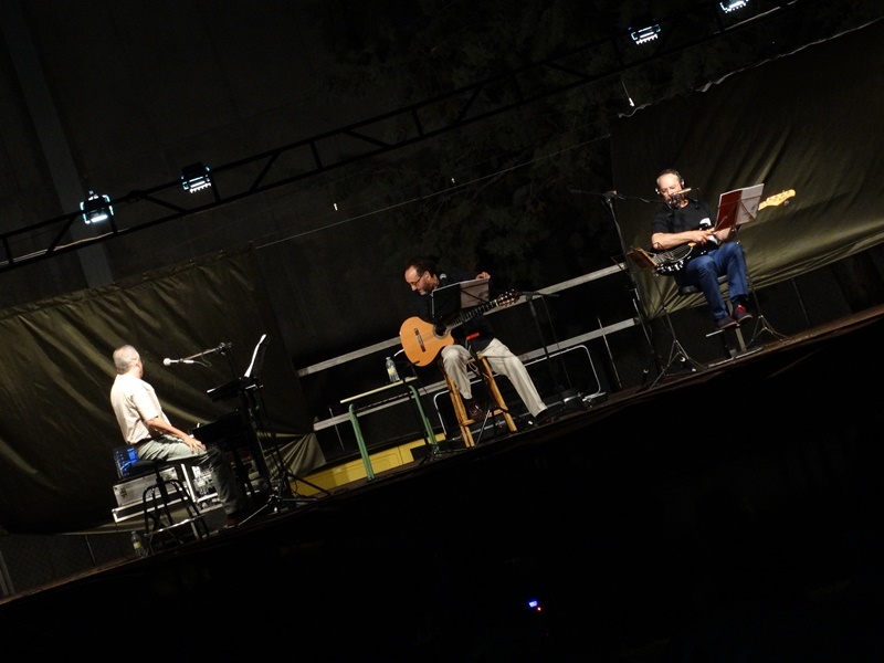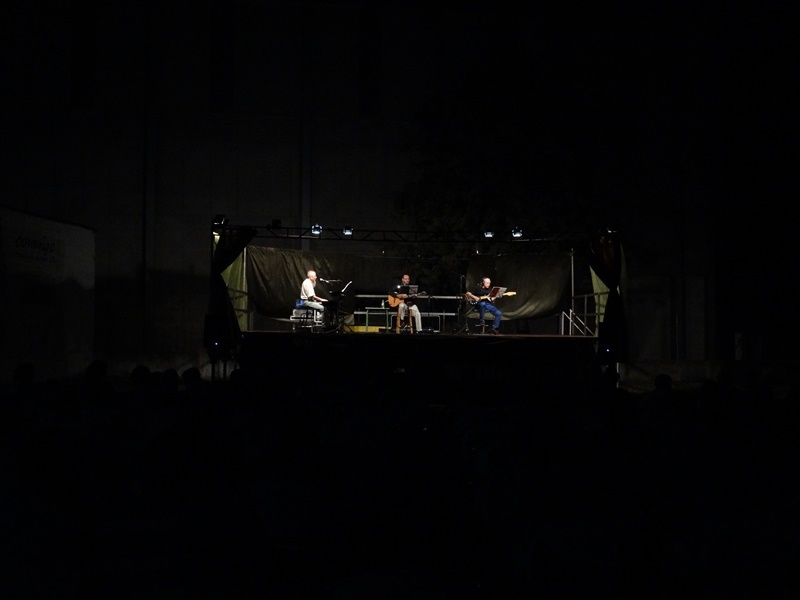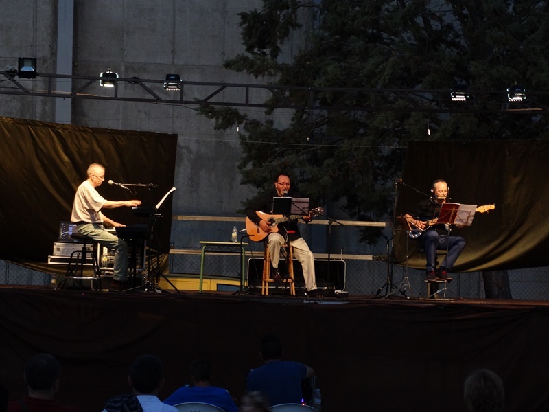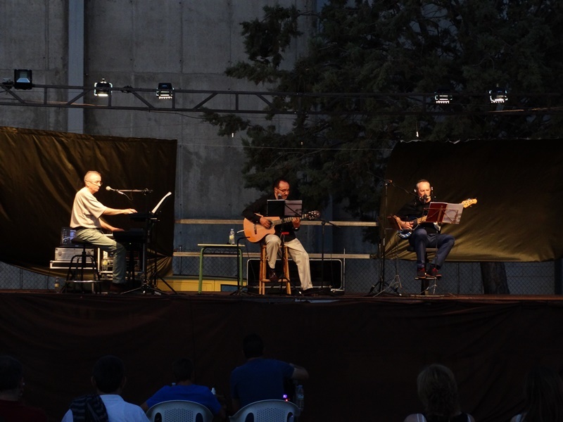 Un centenar de vecinos se sumergió durante dos horas en el repertorio de Concierto 3, compuesto por canciones creadas por ellos mismos. Los tres grandes músicos que componen la banda demostraron su valía y transmitieron con fuerza su amor por la poesía, emocionando al público con cada acorde y verso.