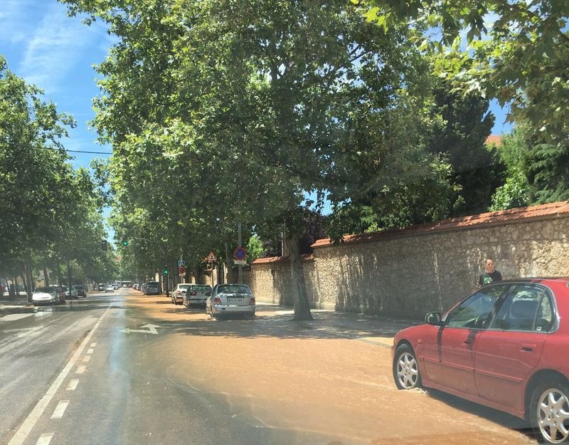 El reventón de una tubería de agua ha inundado al mediodía la avenida de San Agustín. La avería se ha producido sobre las dos de la tarde a la altura de la gasolinera, justo al lado de las Hermanitas de los Pobres, y aunque no ha sido necesario cortar al tráfico la calle, sí que ha dificultado el paso de los vehículos y ha provocado la interrupción del abastecimiento de agua en la zona.