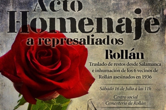 en el Memorial de Salamanca, desde donde serán trasladados hasta Rollán. El acto de homenaje, organizado por la Asociación Memoria y Justicia y el Ayuntamiento de Rollán, contará con la actuación del cantautor Miguel Ángel Gómez Naharro.