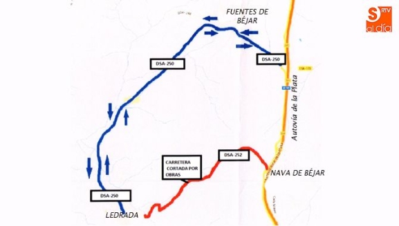 Los desplazamientos entre ambos puntos podrán realizarse a través del itinerario alternativo de la DSA-250, que pasa por el municipio de Fuentes de Béjar