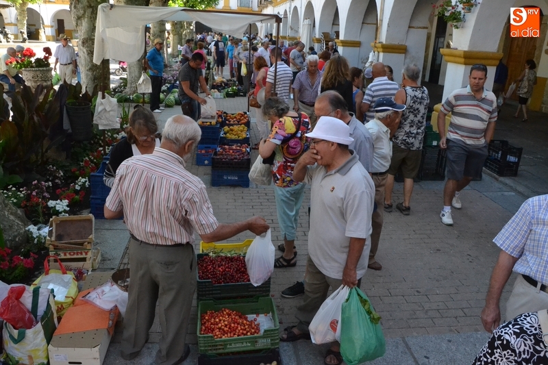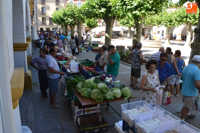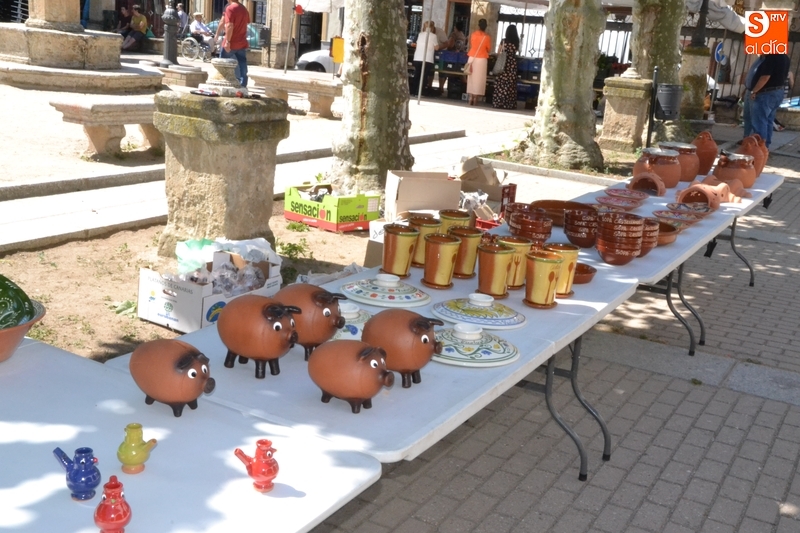 De este modo, a las frutas y verduras que son el eje de este mercado, se suman durante los meses de julio y agosto piezas de alfarería, mantas de El Bodón o los productos de Negro Ennegrecido, que están situados en la zona de soportales opuesta a la zona donde están situados los hortelanos.