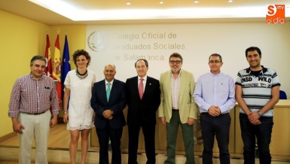 El Colegio de Graduados Sociales ha rendido este martes un homenaje a Jesús Juanes Galindo, responsable del Sistema RED en la Tesorería de la Seguridad Social en Salamanca, con motivo de su jubilación. En el acto intervenían el presidente de la entidad colegial, Ángel Castilla Corral, junto a Joaquín Merchán Bermejo, vicepresidente del Consejo General de Graduados Sociales de España.