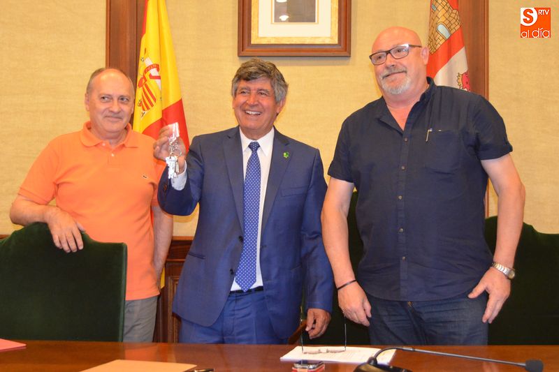 El secretario general de la Unión General de Trabajadores de Castilla y León, Faustino Temprano Vergara, y el alcalde de Béjar, Alejo Riñones Rico, han firmado, esta mañana, el contrato de Cesión de Inmueble en Comodato de 40 años, del edificio propiedad de la Unión General de Trabajadores en la Calle Flamencos, nº 17-19, que ocuparon antes de su traslado a la Plaza de los Aires.