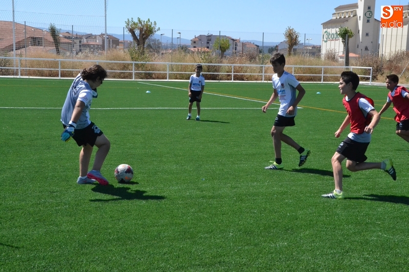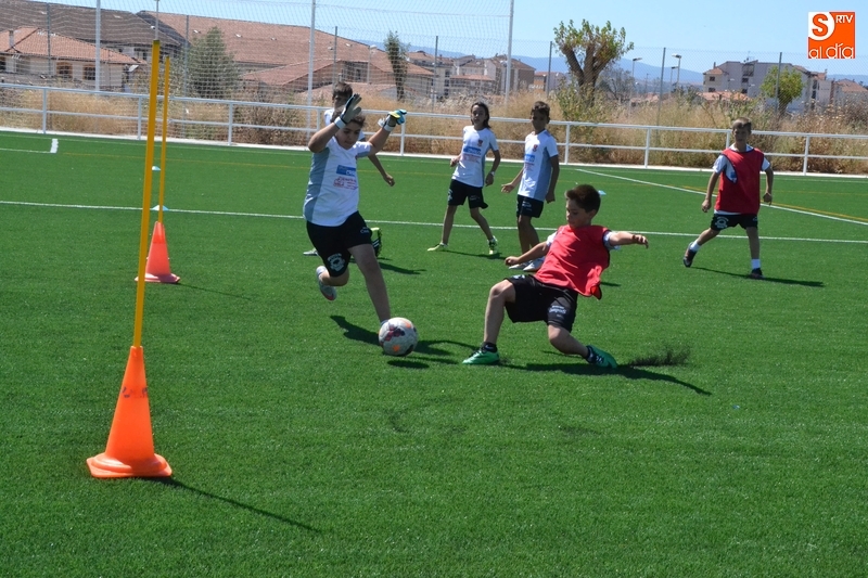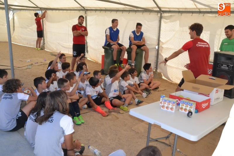 Este jugador compartió toda la mañana con los chavales, trabajando a lo largo de la sesión con los tres grupos en los que están divididos (en función de su edad). A la hora del almuerzo (que se realiza en una carpa colocada junto al campo de césped artificial), los alumnos del Campus tuvieron la oportunidad de preguntar lo que quisieron a Dani Montes, sometiéndole a un auténtico 'interrogatorio' tanto deportivo como personal.