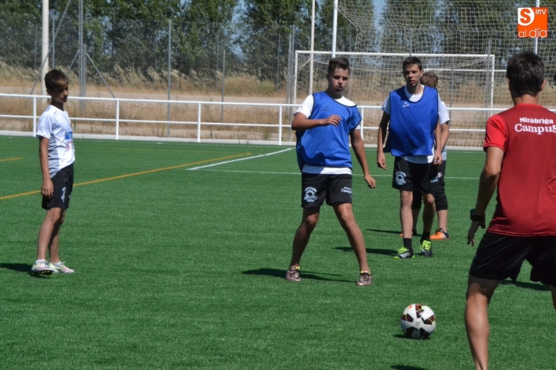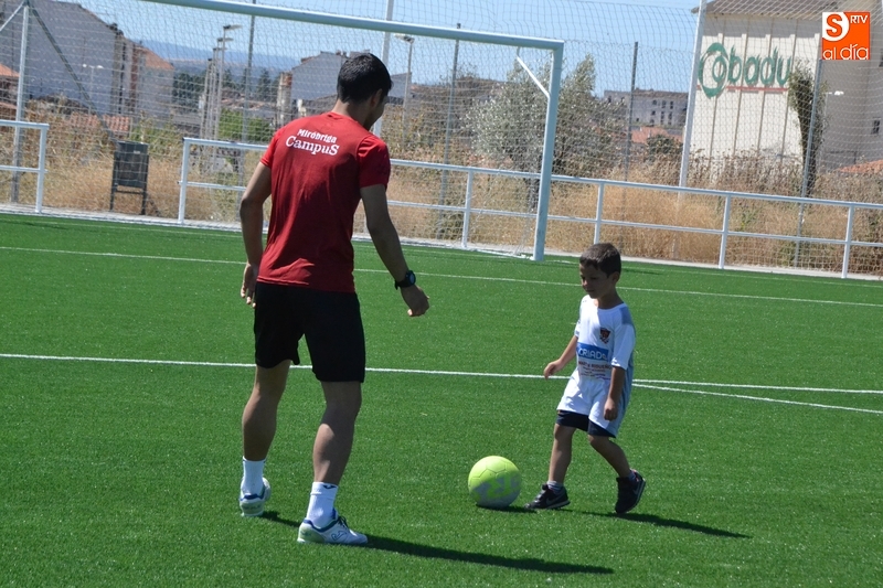 El Miróbriga Campus que dirigen los jugadores del primer equipo del Ciudad Rodrigo Club de Fútbol David Risueño y Gabri de Aller recibió en la mañana del jueves la visita del jugador del Santiago Futsal de la 1ª División del Fútbol Sala español Dani Montes, conocido como Dani 'Chino'.